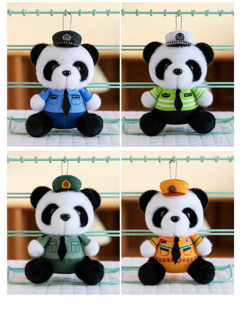 귀여운 교통 경찰 곰 펜던트 봉제 장난감 인형 경찰 자이언트 팬더 가방 펜던트 파이어 베어 키 체인