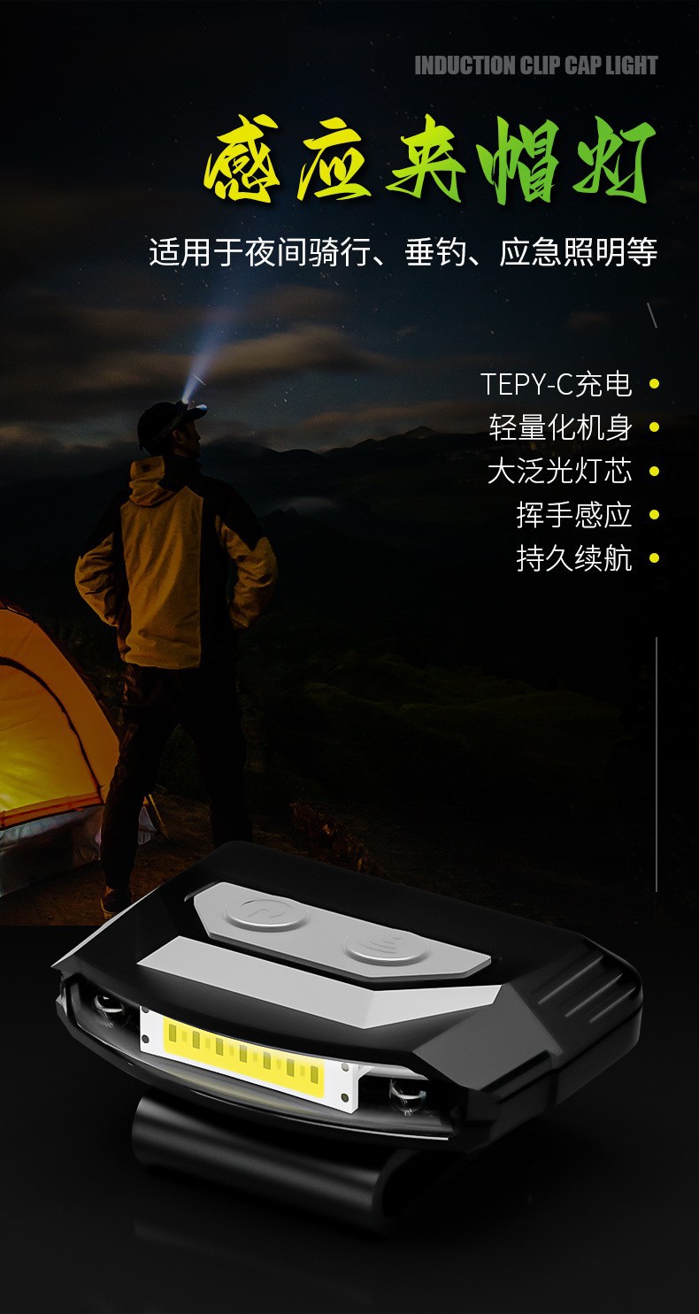 야외 밤 낚시 강한 가벼운 헤드 램프 유도 슈퍼 밝은 충전 낚시 작은 긴 지구력 캡 클립 램프 조명 손전등