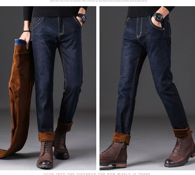 추위 방지 따뜻한 스트레이트 기모 두꺼운 가을과 겨울 스트레치 남성용 청바지 캐주얼 작업 두꺼운 청바지스토어 가기