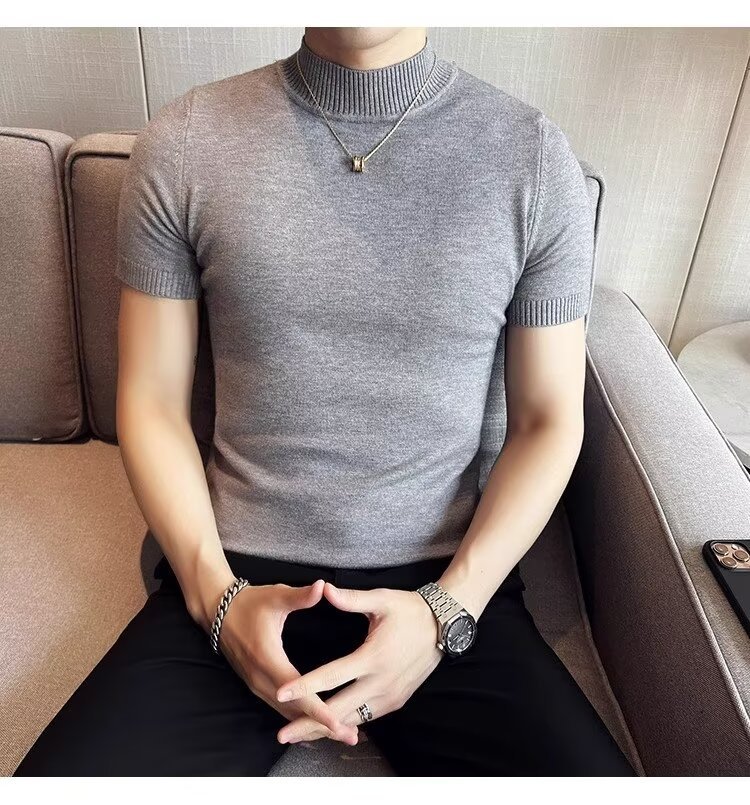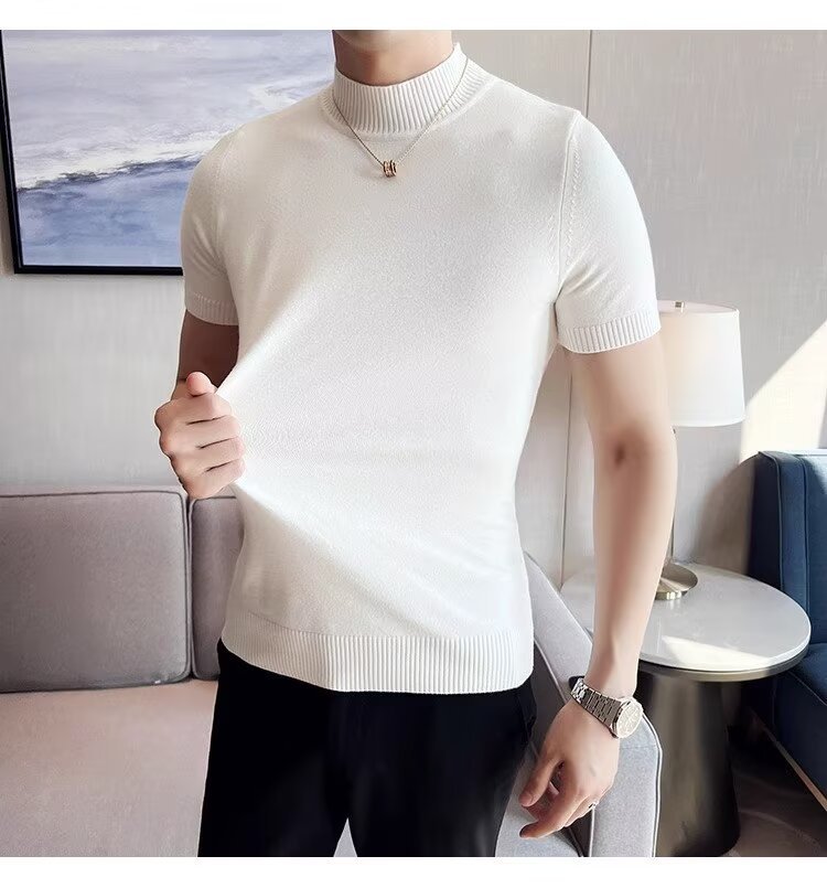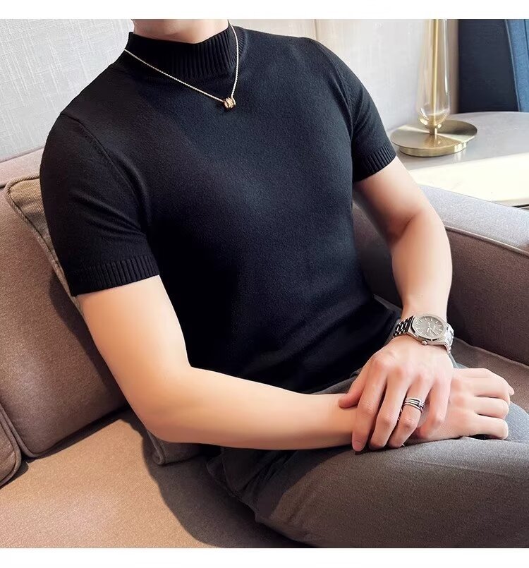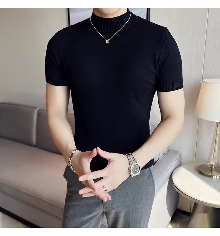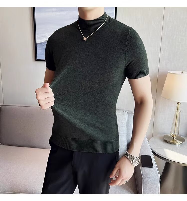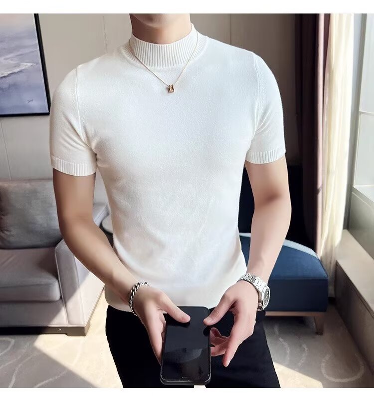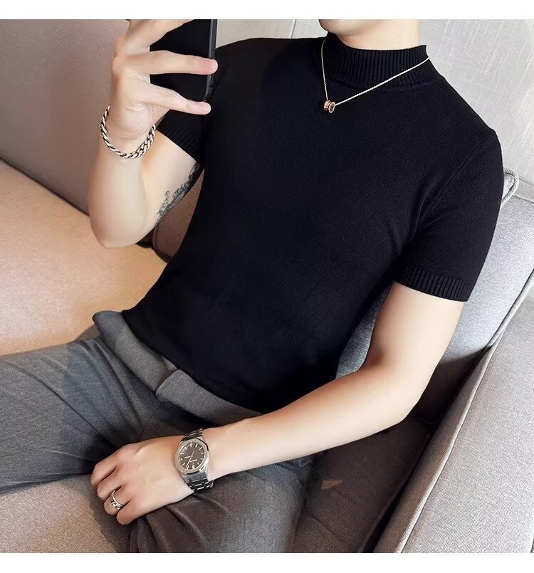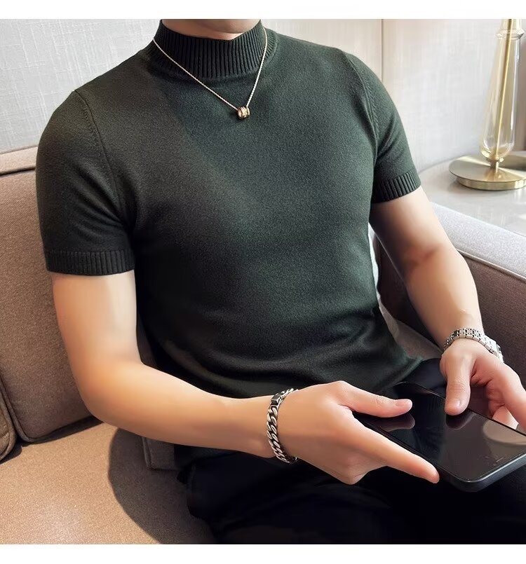 하프 터틀넥 티셔츠 남성용 반팔 스웨터 2024 새로운 가을 및 겨울 하이 엔드 내부 칼라 니트베이스 셔츠스토어 가기