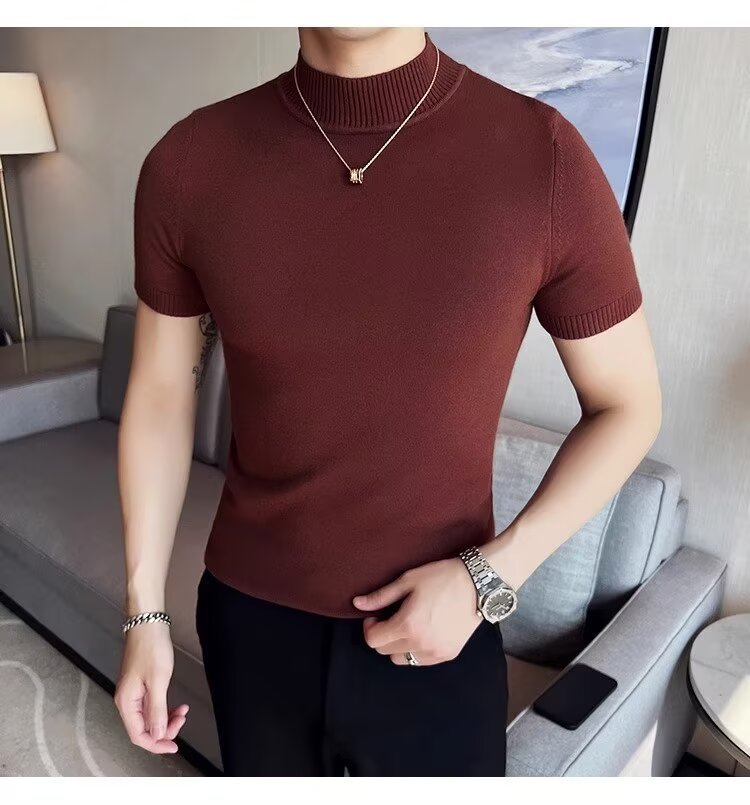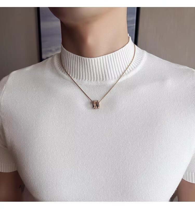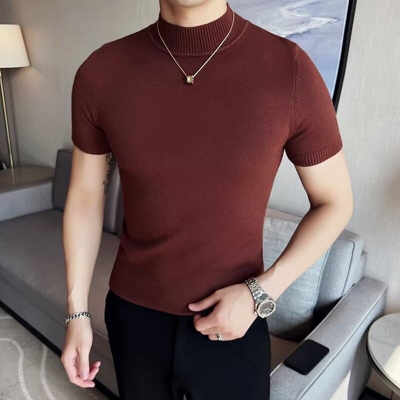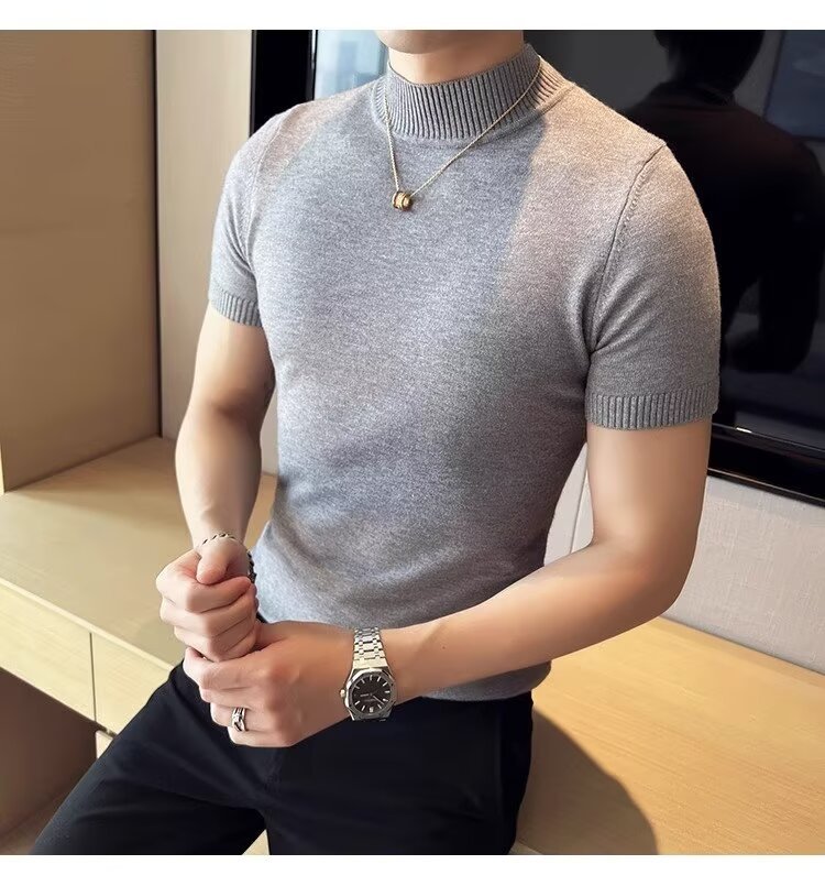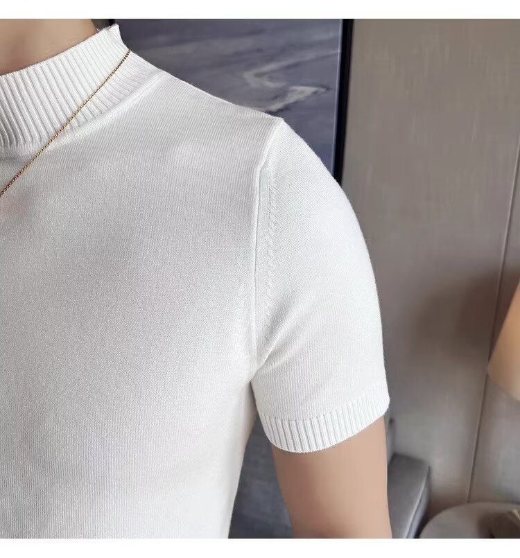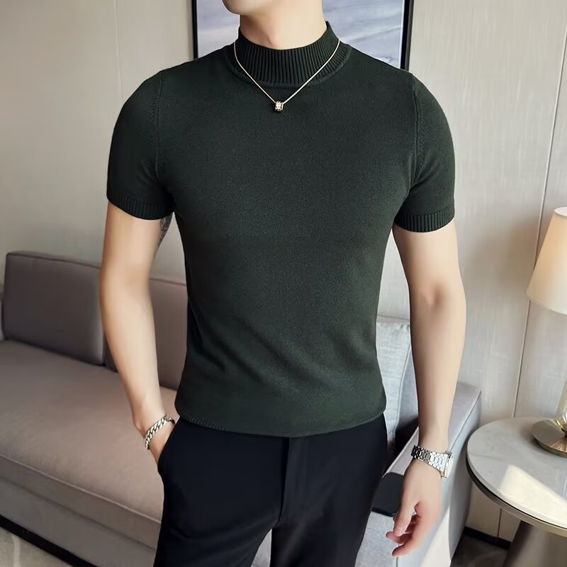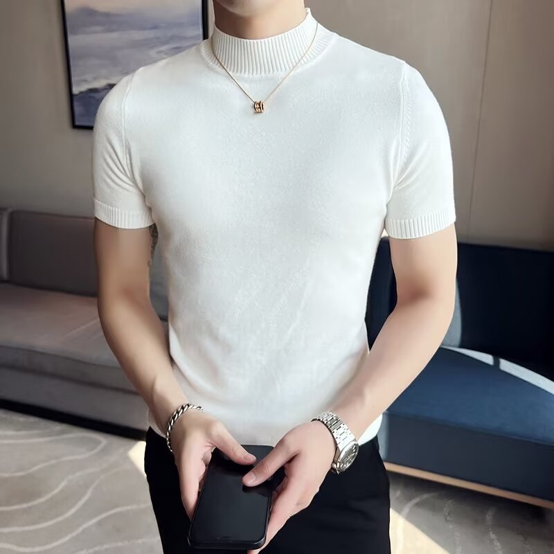 하프 터틀넥 티셔츠 남성용 반팔 스웨터 2024 새로운 가을 및 겨울 하이 엔드 내부 칼라 니트베이스 셔츠스토어 가기