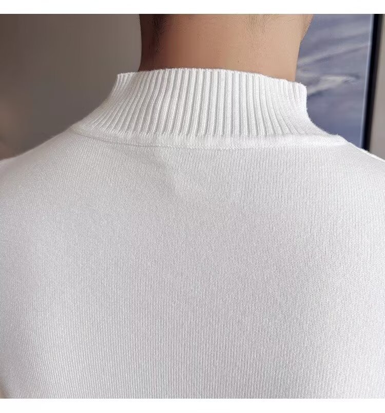하프 터틀넥 티셔츠 남성용 반팔 스웨터 2024 새로운 가을 및 겨울 하이 엔드 내부 칼라 니트베이스 셔츠
