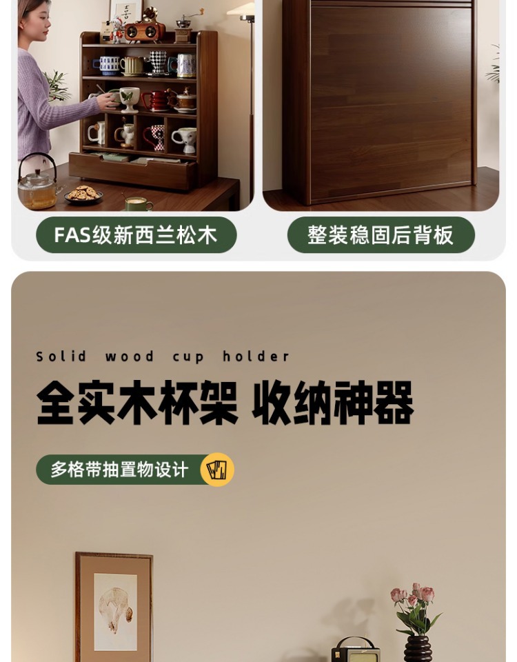 实木杯架子餐桌置物架餐边柜水杯茶杯放置柜台面咖啡杯收纳展示架
