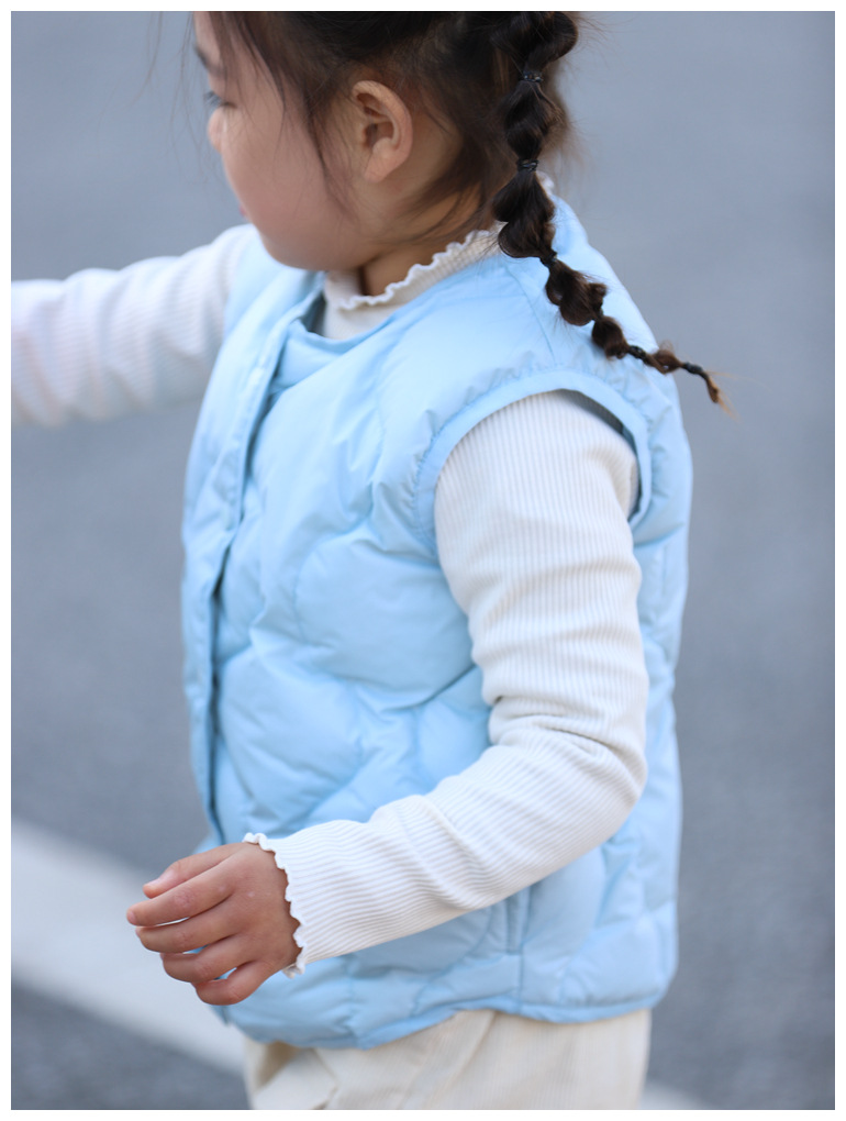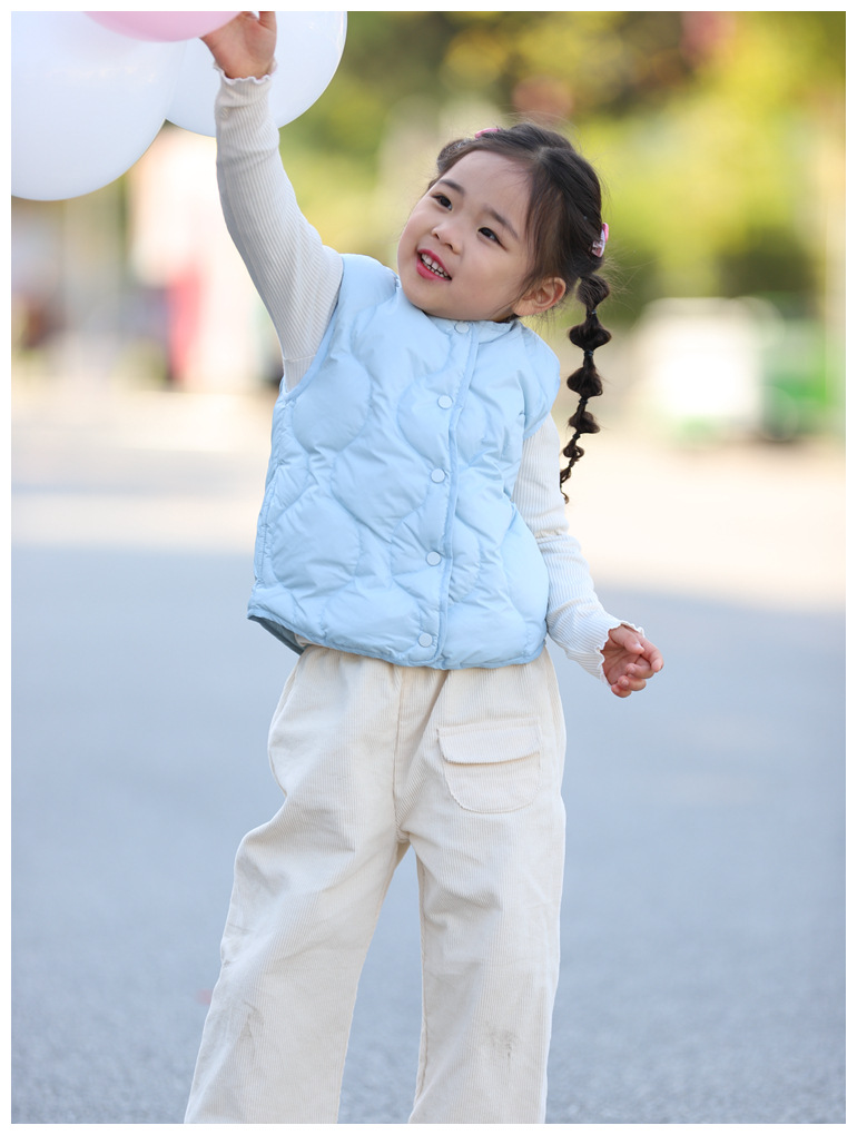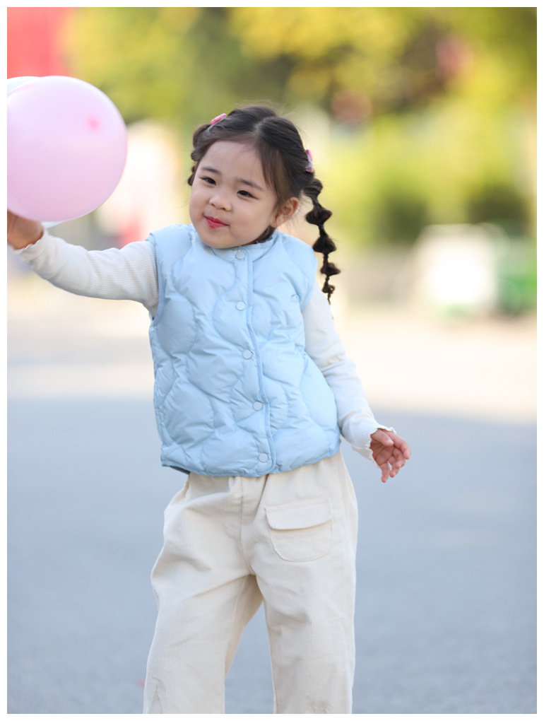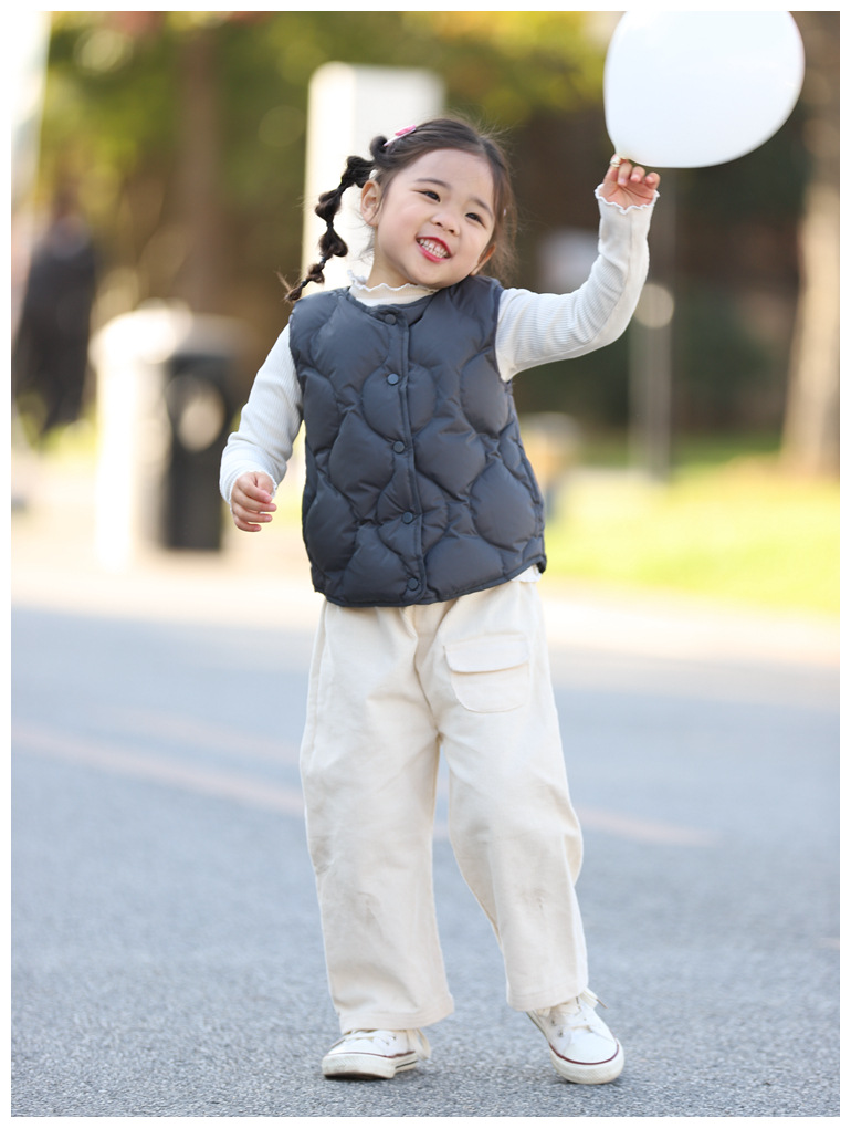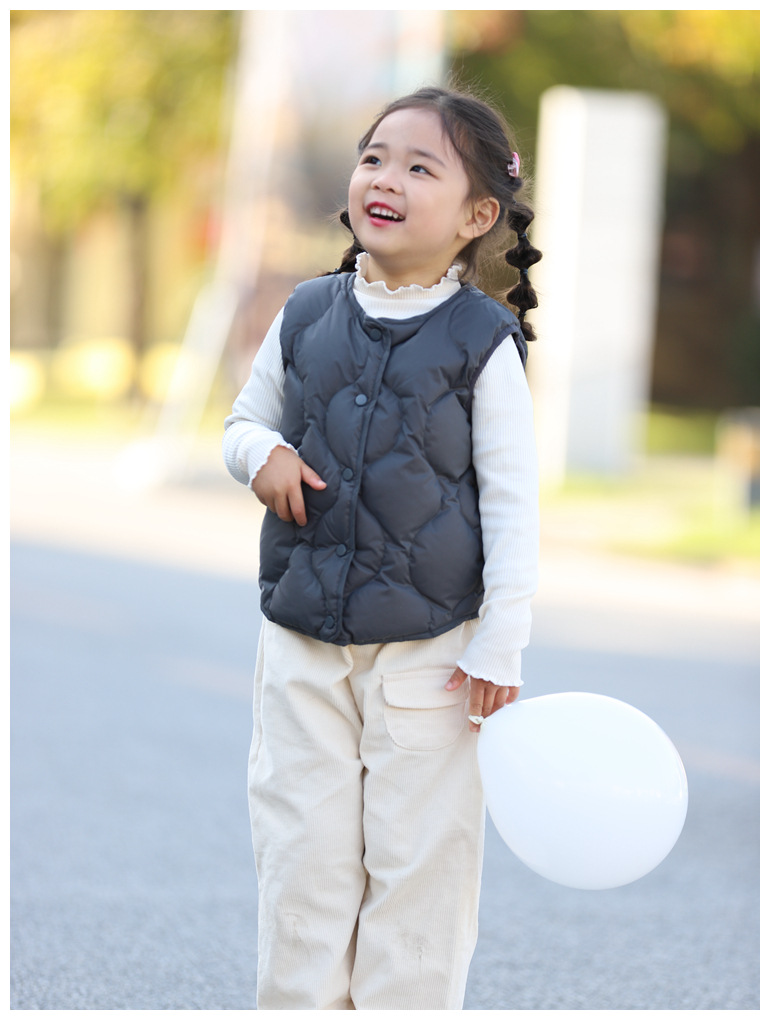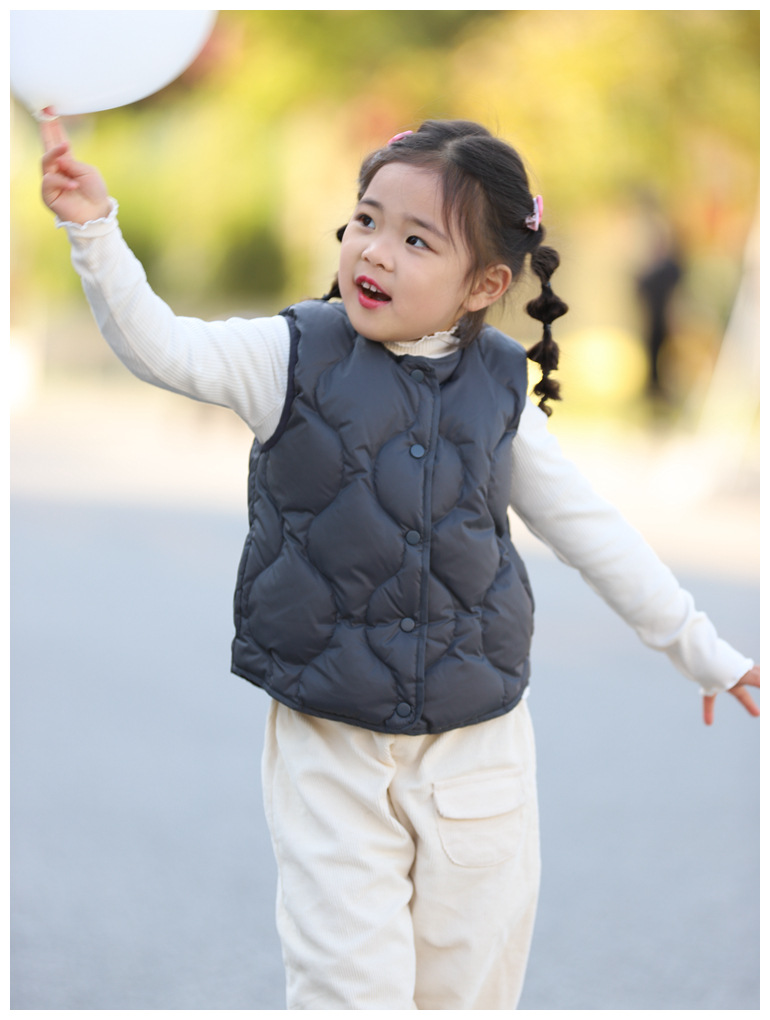 2024 가을과 겨울 빛 어린이 다운 조끼 중소 어린이 내부 방광 소년 소녀는 마름모 조끼를 입습니다.