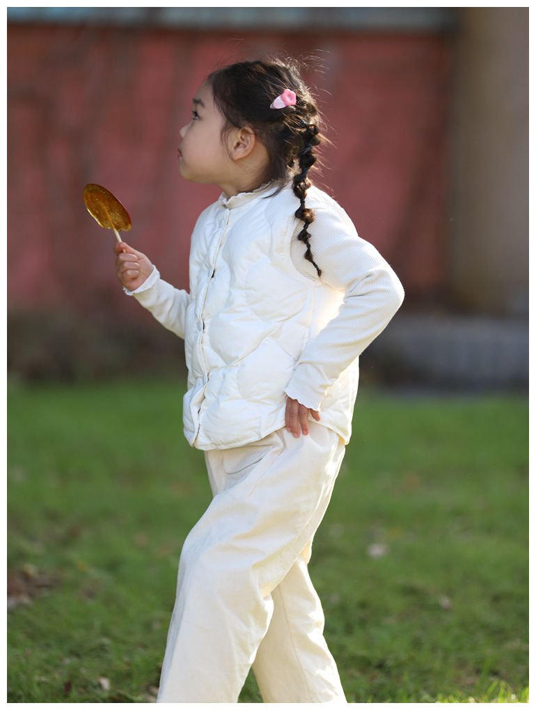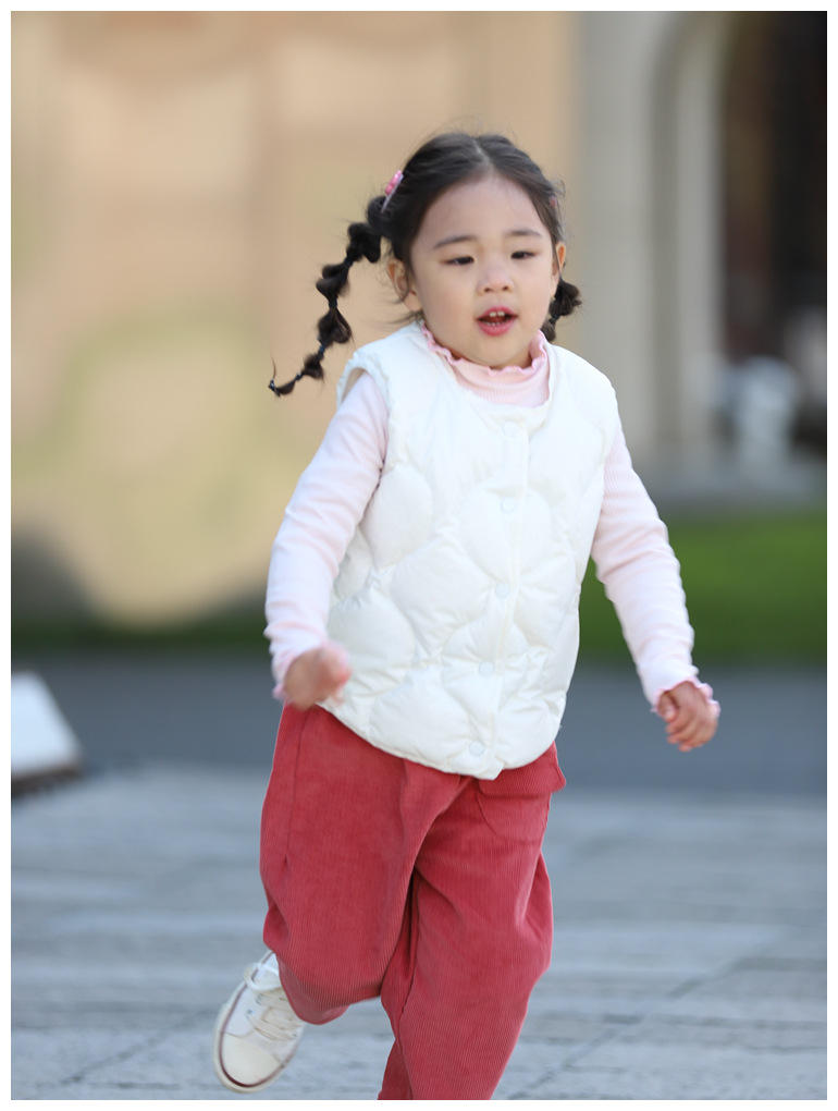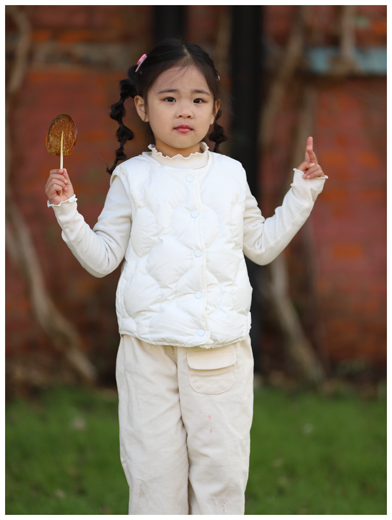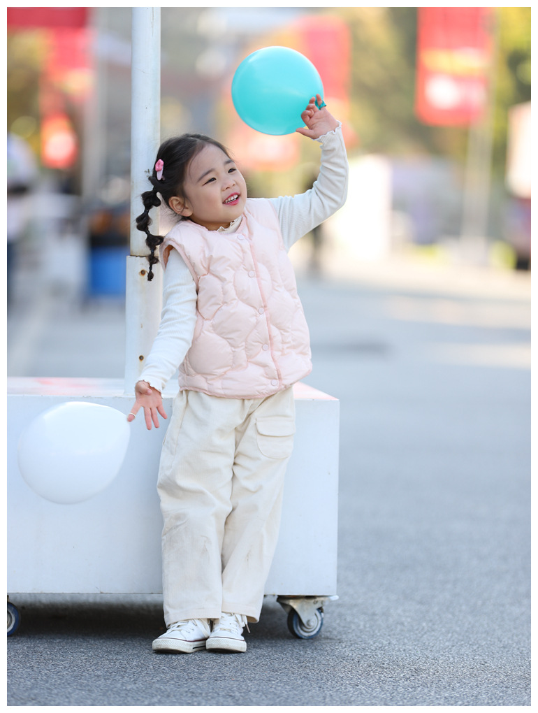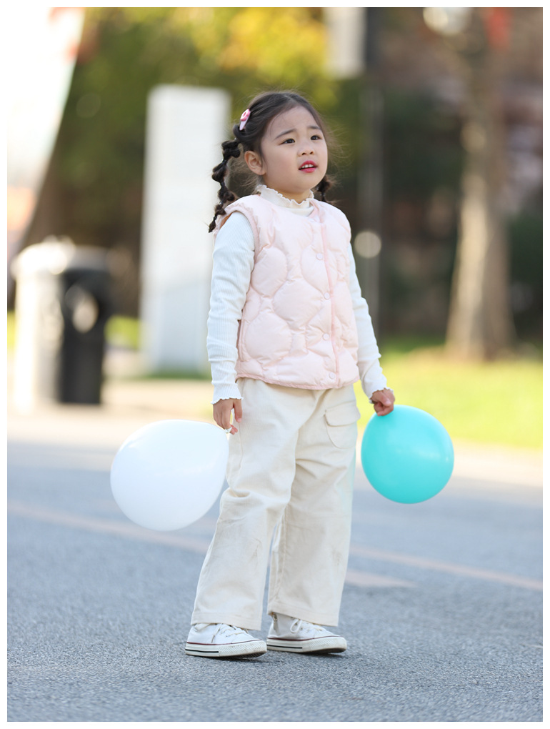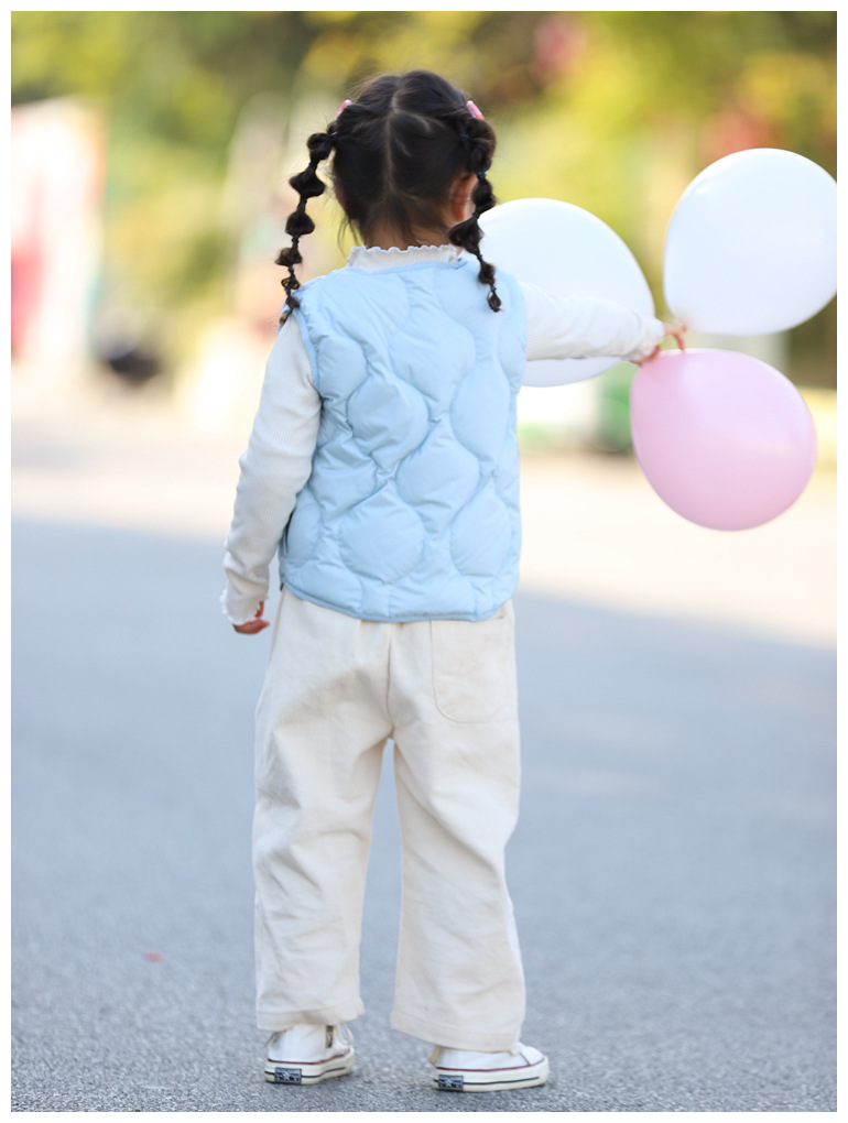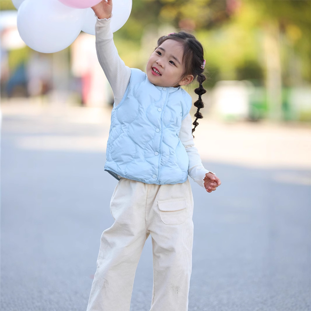 2024 가을과 겨울 빛 어린이 다운 조끼 중소 어린이 내부 방광 소년 소녀는 마름모 조끼를 입습니다.