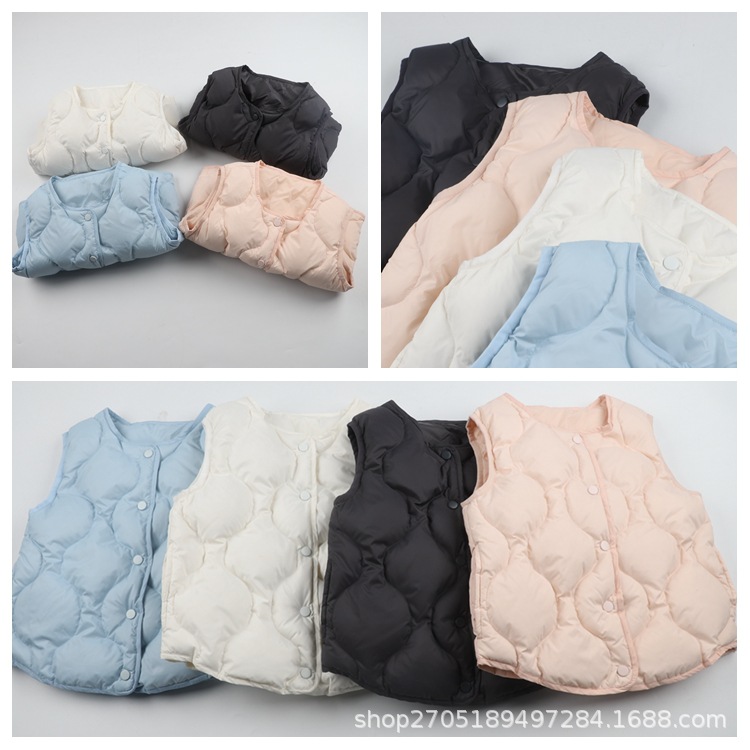 2024 가을과 겨울 빛 어린이 다운 조끼 중소 어린이 내부 방광 소년 소녀는 마름모 조끼를 입습니다.스토어 가기