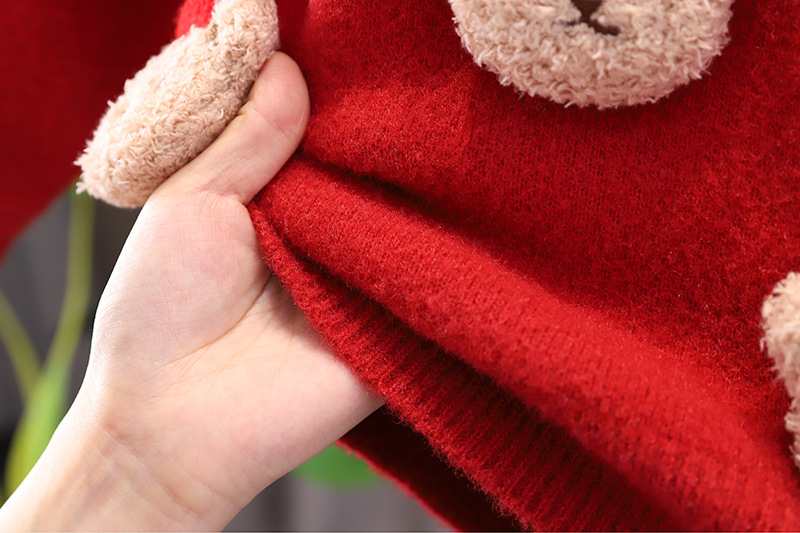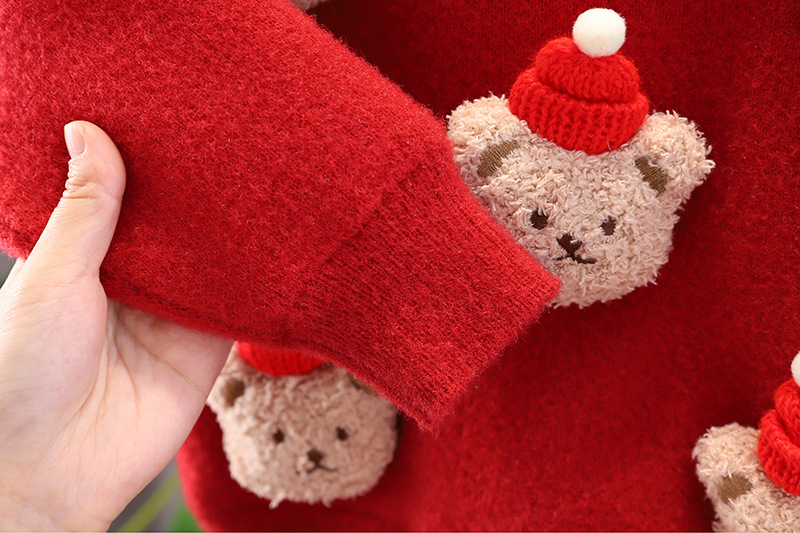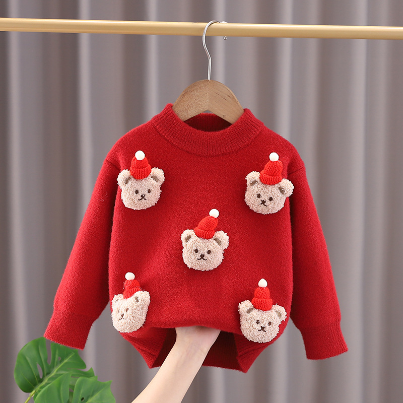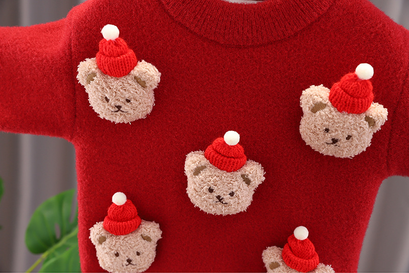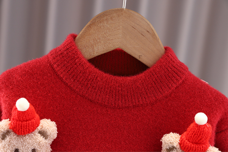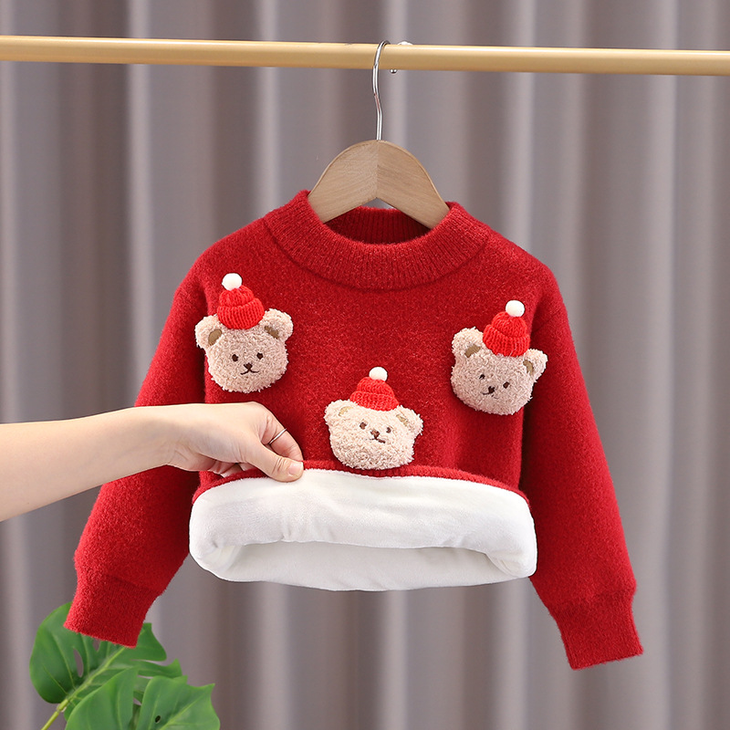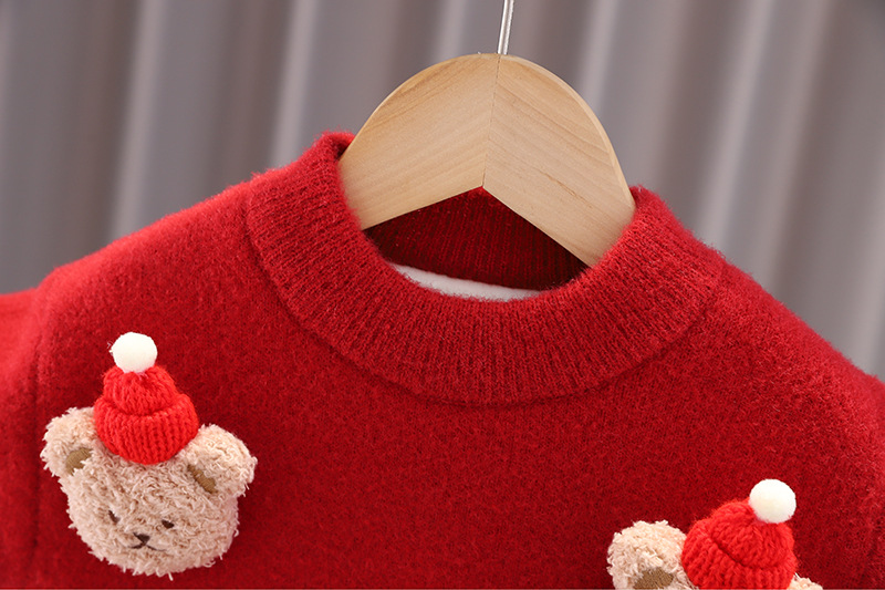 크리스마스 어린이 스웨터 한국 벨벳 두꺼운 소년과 소녀 만화 곰 수제 니트 베이스 셔츠스토어 가기