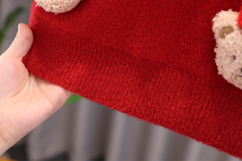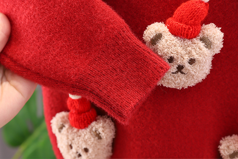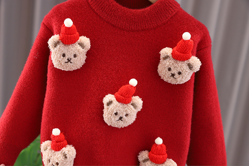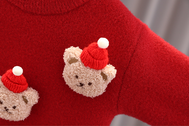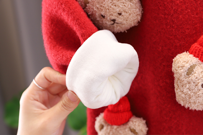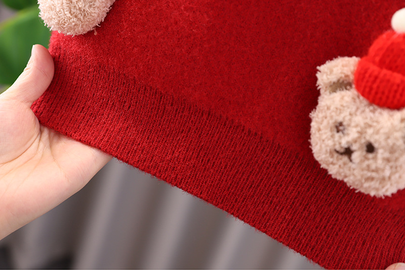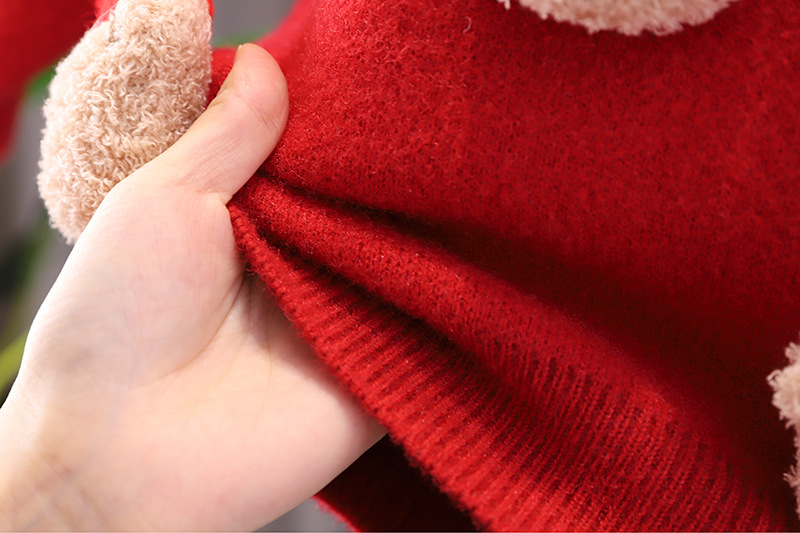 크리스마스 어린이 스웨터 한국 벨벳 두꺼운 소년과 소녀 만화 곰 수제 니트 베이스 셔츠스토어 가기