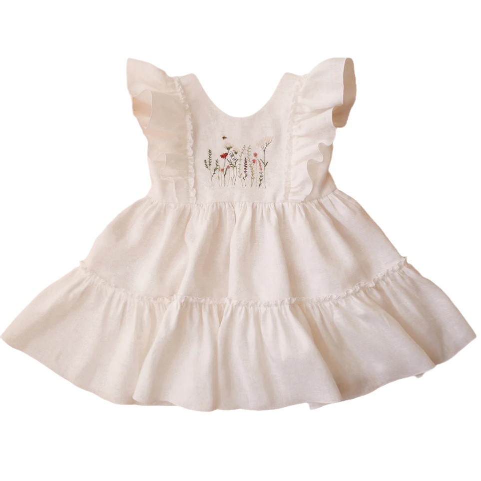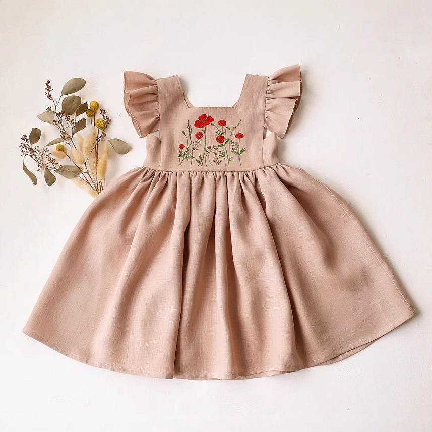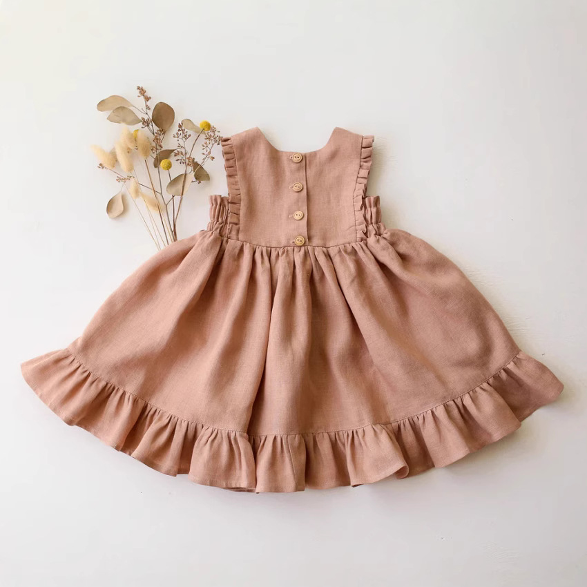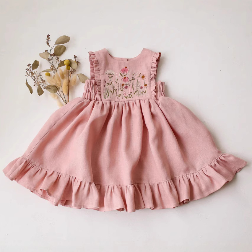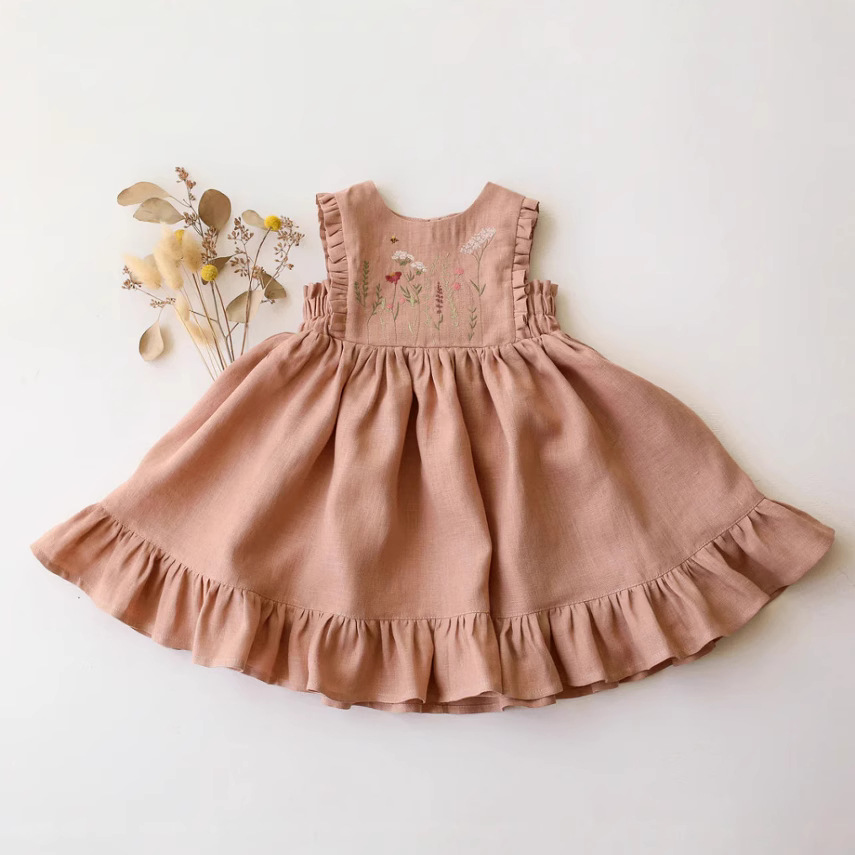 여아 코튼 리넨 연꽃 잎 스윙 민소매 조끼 원피스 자수 자수 어린이 착용 국경 간 아마존 AliExpress스토어 가기