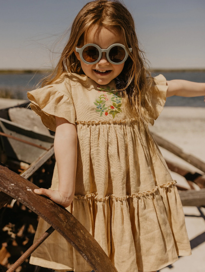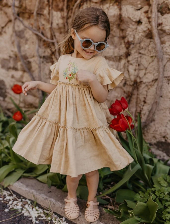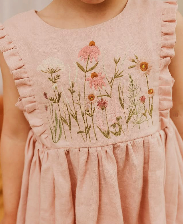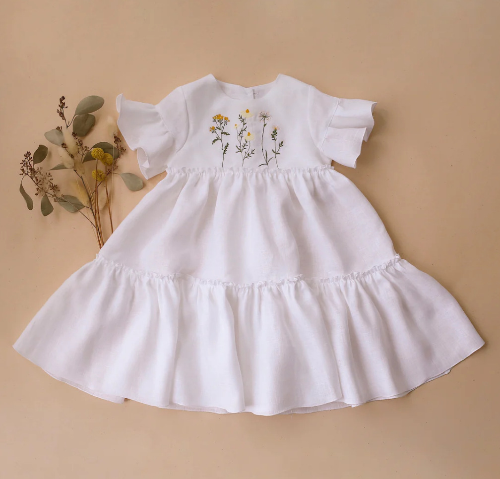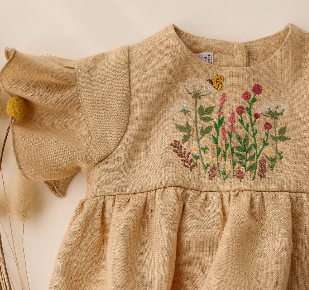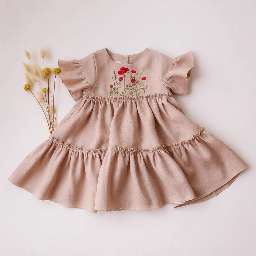 여아 코튼 리넨 연꽃 잎 스윙 민소매 조끼 원피스 자수 자수 어린이 착용 국경 간 아마존 AliExpress스토어 가기