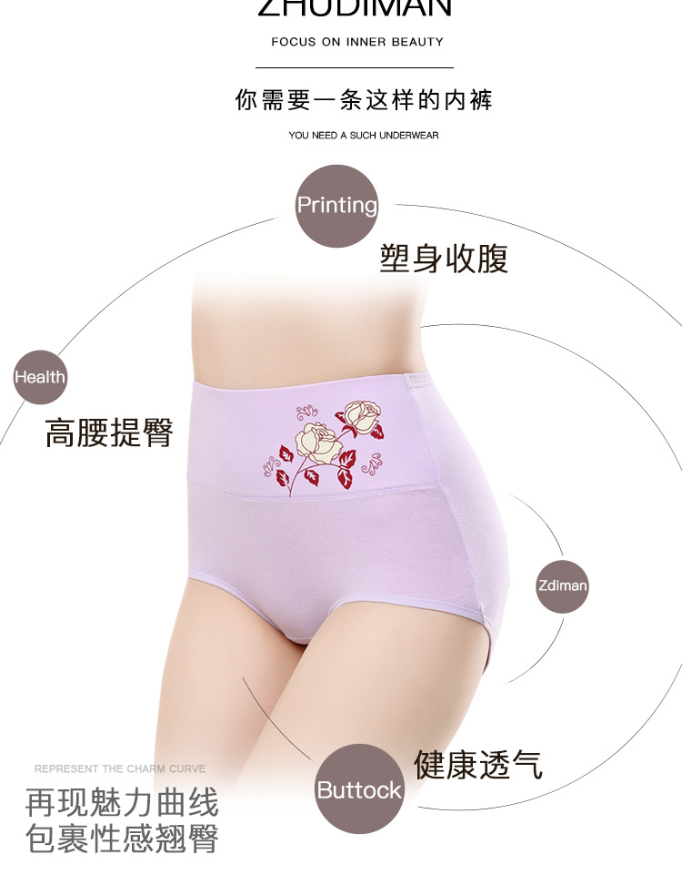 여성용 속옷 여성용 면화 높은 허리 인쇄 플러스 사이즈 배꼽 치기 삼각형 반바지 통통녀 중년 어머니의 반바지 속옷스토어 가기