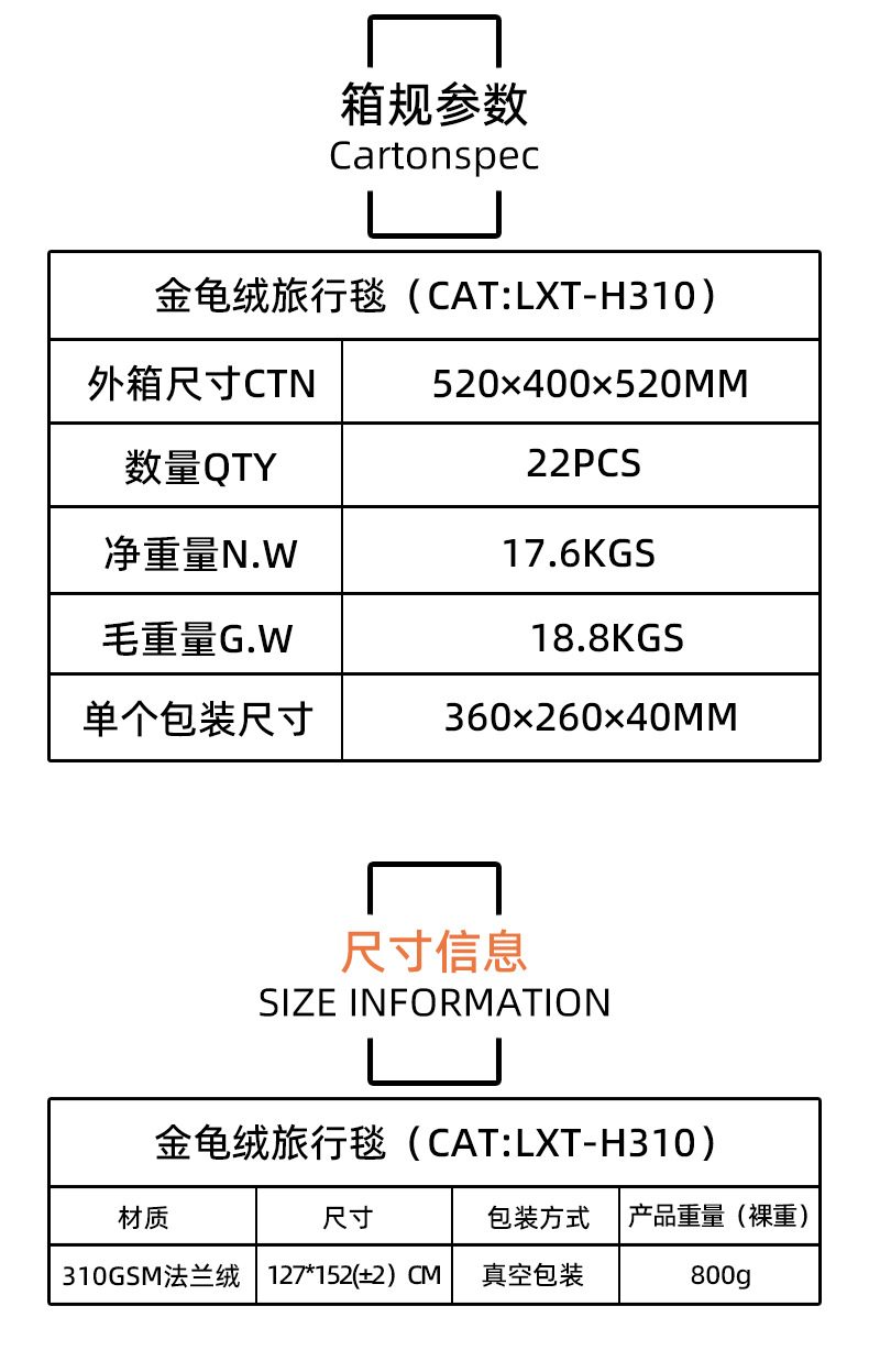 毛毯尺寸:50*60INCH(127*152CM)