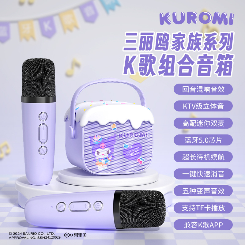 산리오 6월1일 쿠로미 노래방 스피커 블루투스 스피커 듀얼 마이크 무선 마이크 노래 장치 휴일용스토어 가기