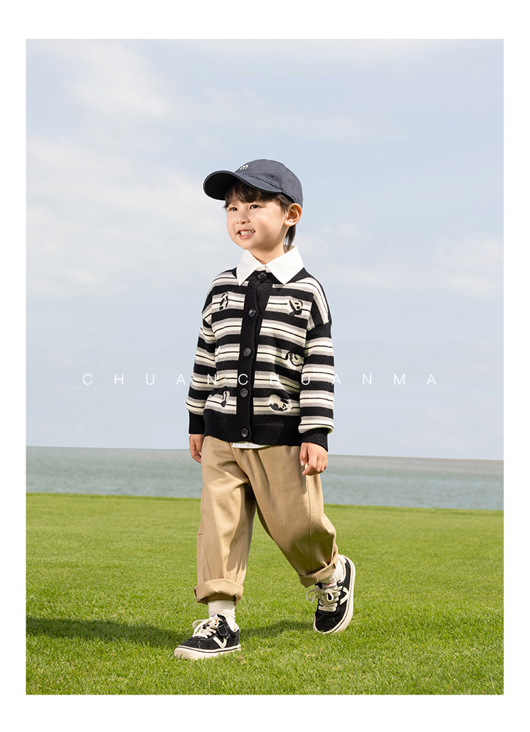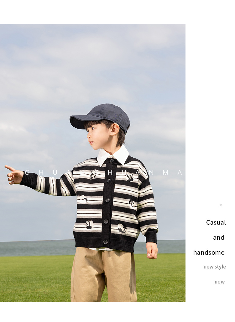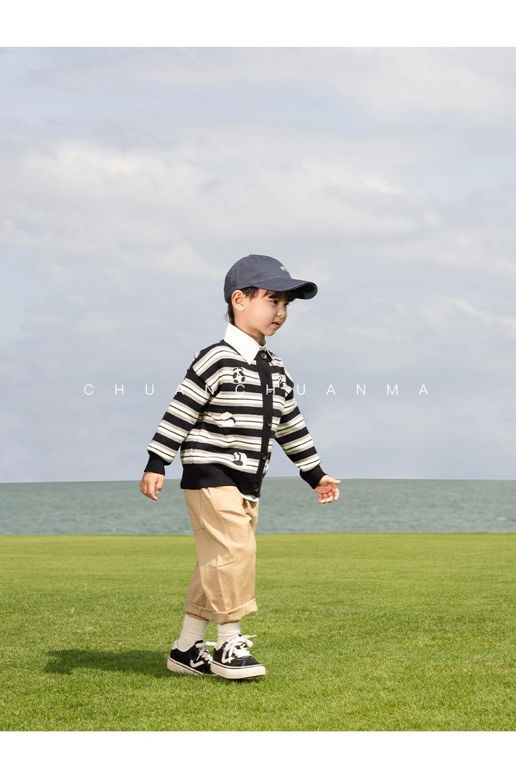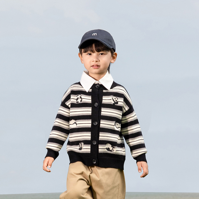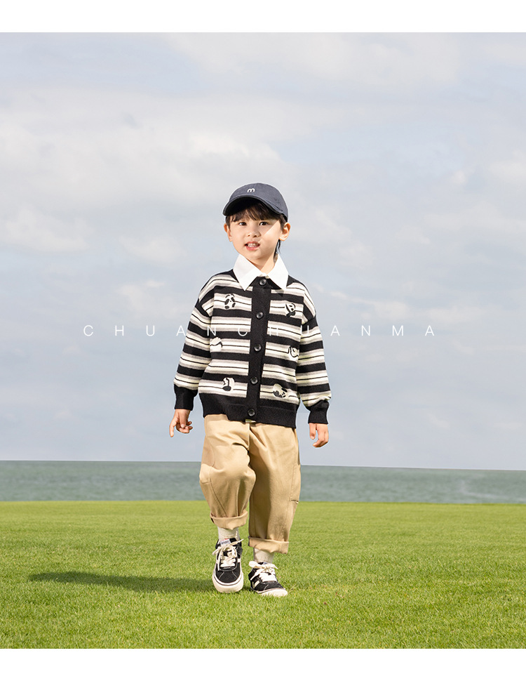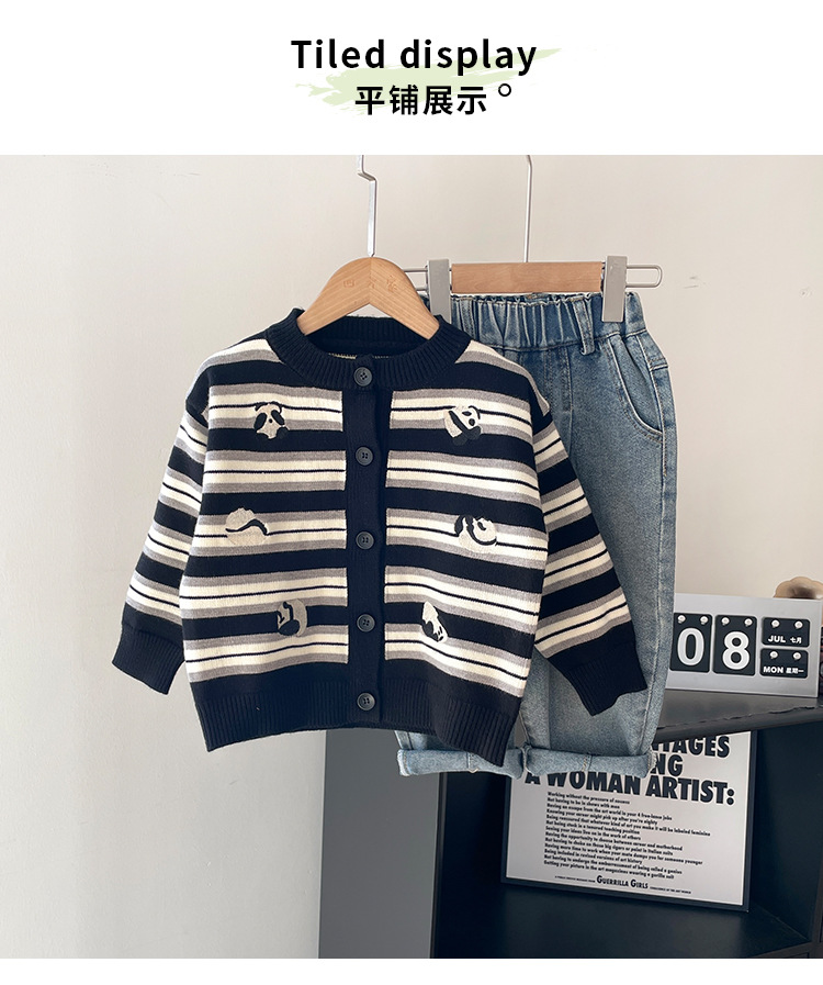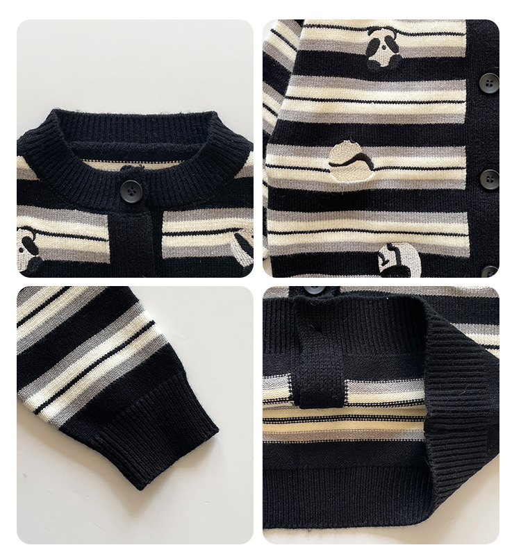 윈드 밸리 2025 봄 새 아동복 한국 자수 판다 니트웨어 소년 소녀를위한 카디건
