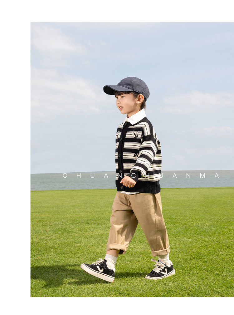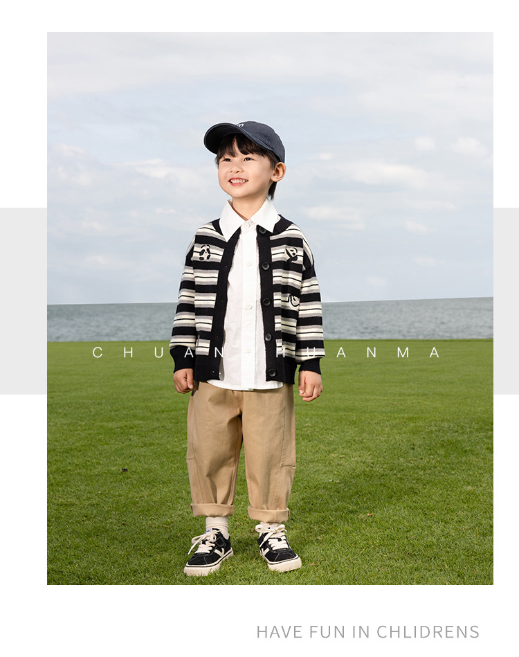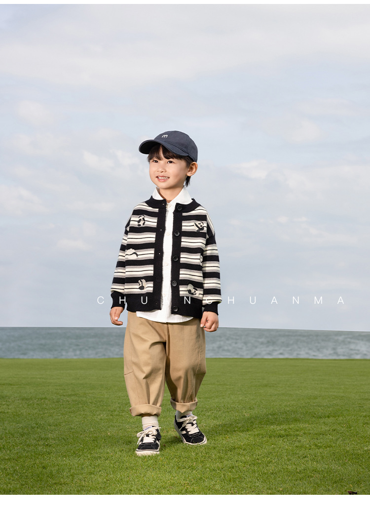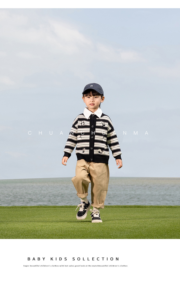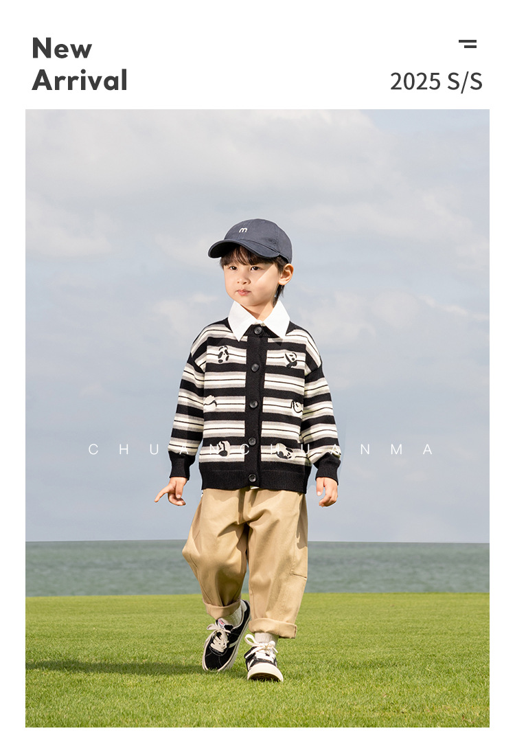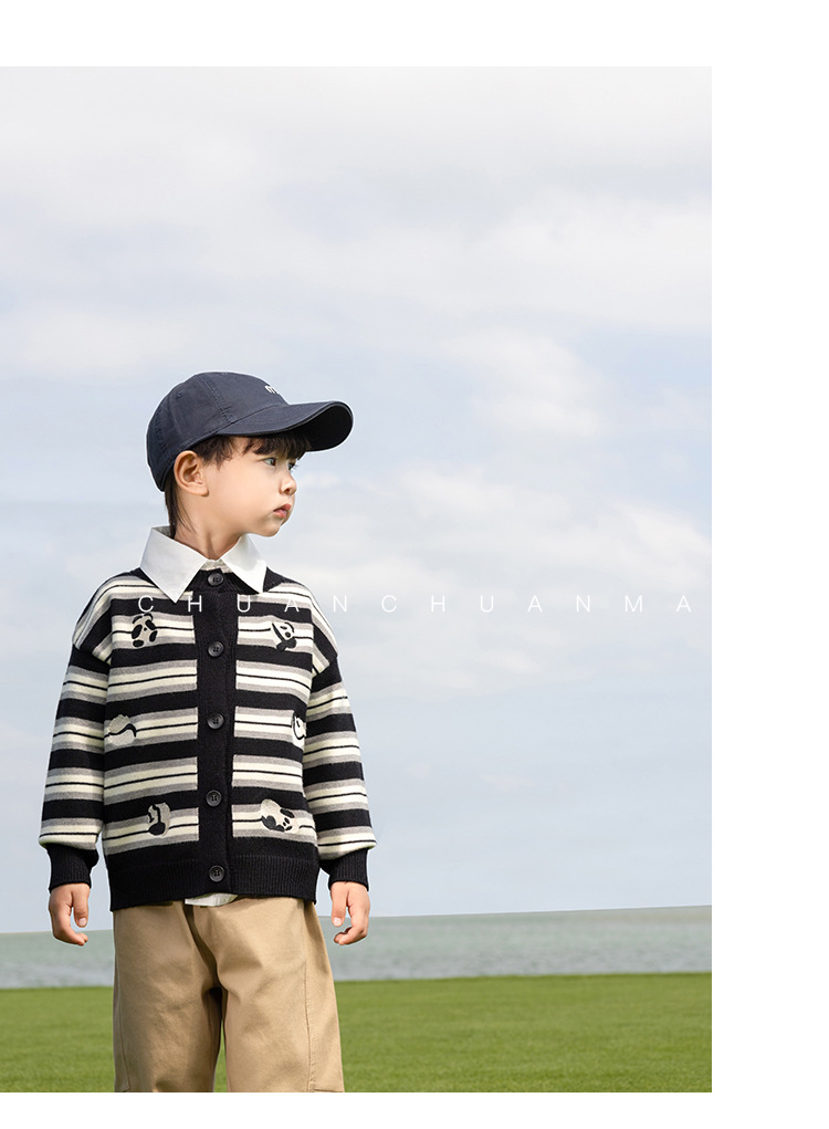 윈드 밸리 2025 봄 새 아동복 한국 자수 판다 니트웨어 소년 소녀를위한 카디건
