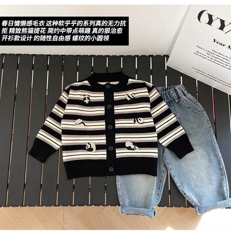 윈드 밸리 2025 봄 새 아동복 한국 자수 판다 니트웨어 소년 소녀를위한 카디건스토어 가기