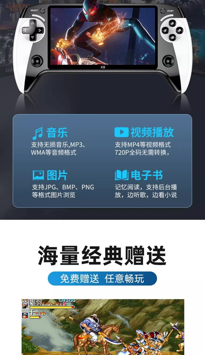 전투기 포켓몬의 X9 아케이드 게임 콘솔 휴대용 시뮬레이터 5.5 인치 더블 더블 무선 핸들 GBA 게임 왕