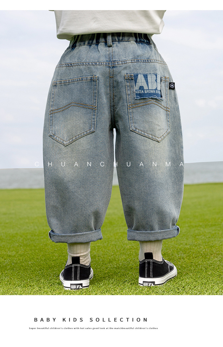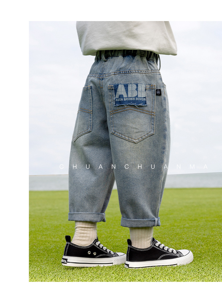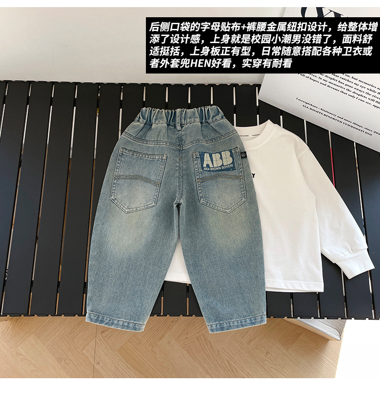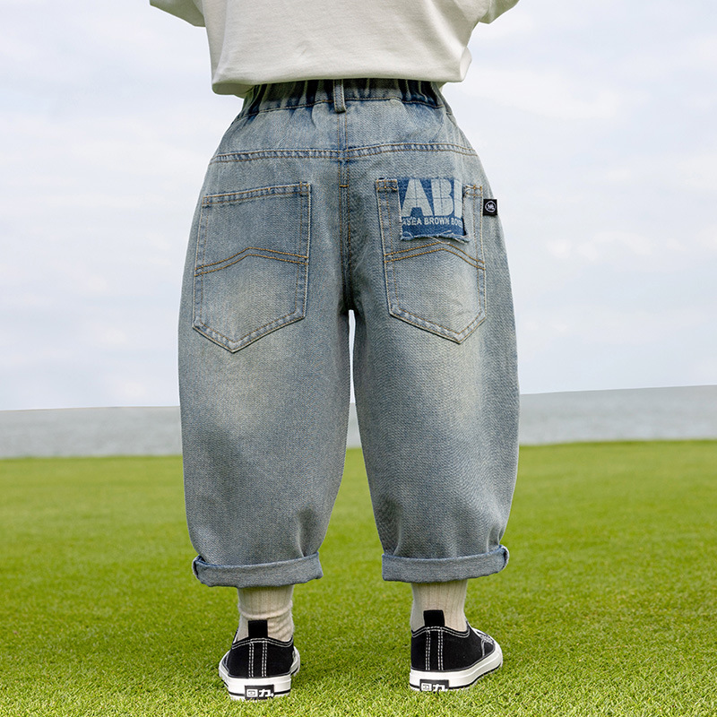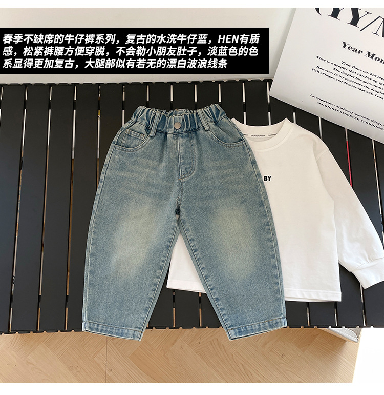 바람의 계곡 2025 이른 봄 새 어린이 바지 어린이 한국식 편지 인쇄 청바지 소년 느슨한 복고풍 바지스토어 가기