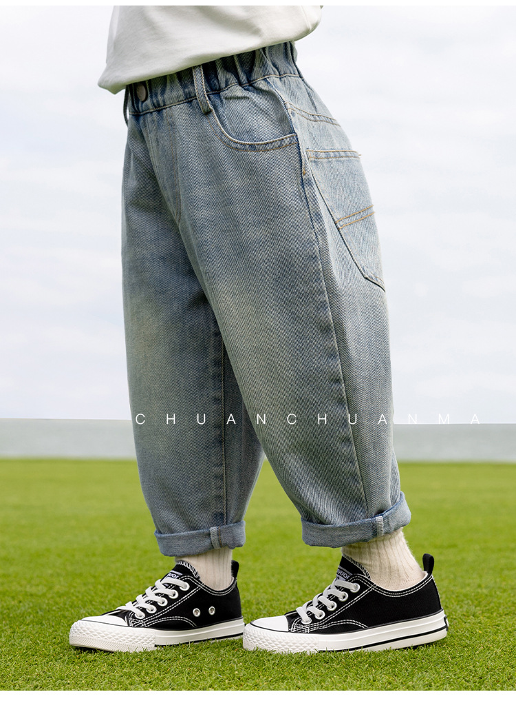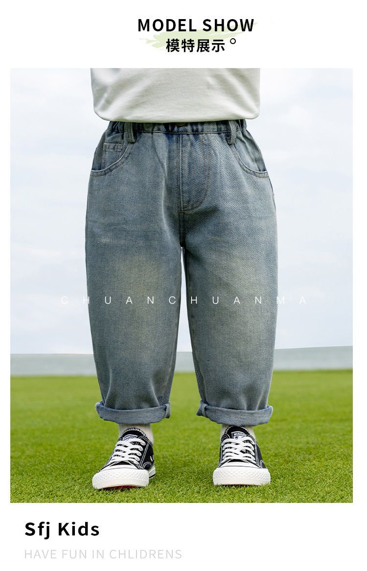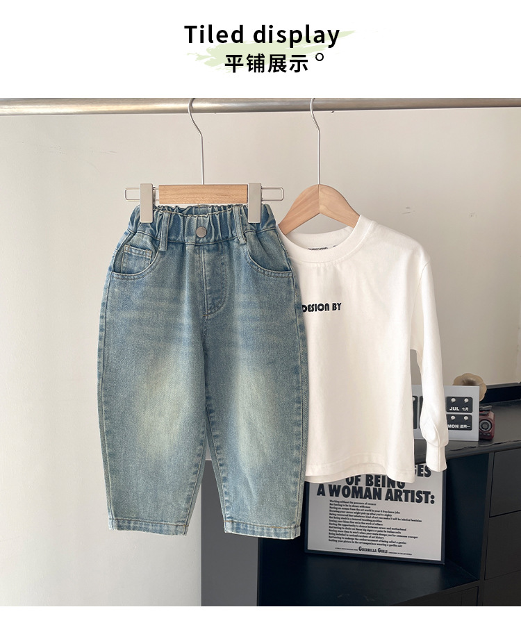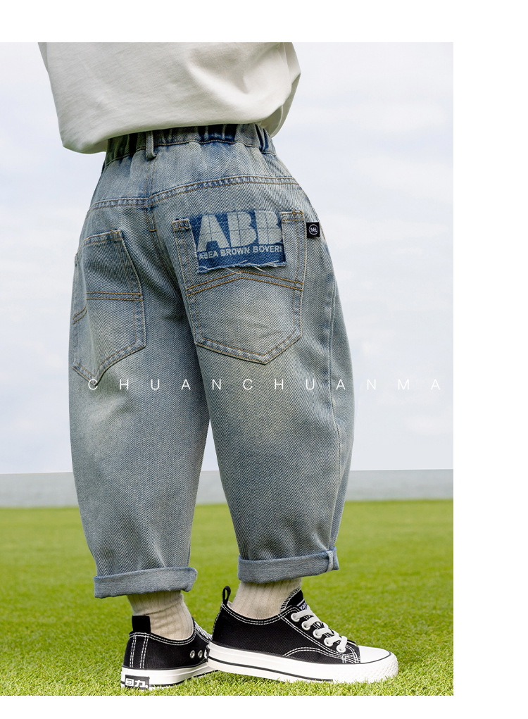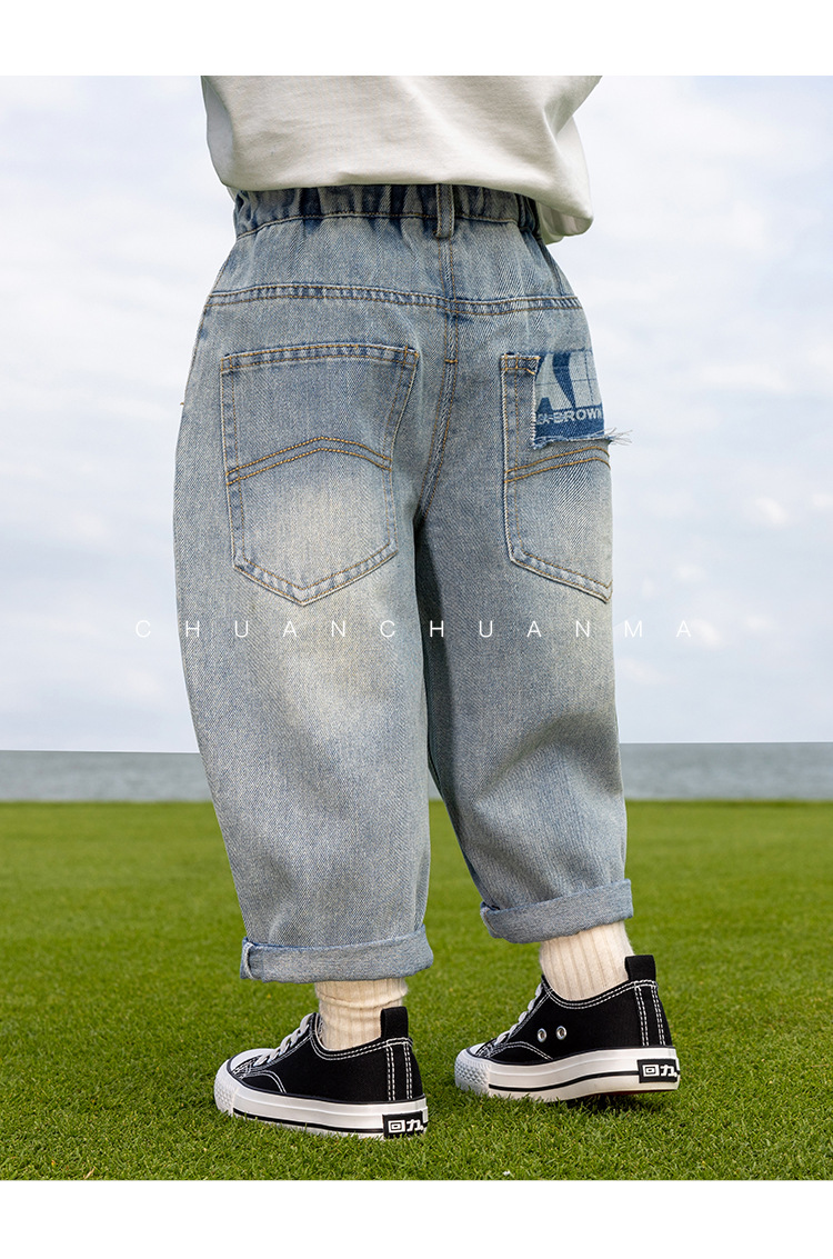 바람의 계곡 2025 이른 봄 새 어린이 바지 어린이 한국식 편지 인쇄 청바지 소년 느슨한 복고풍 바지스토어 가기