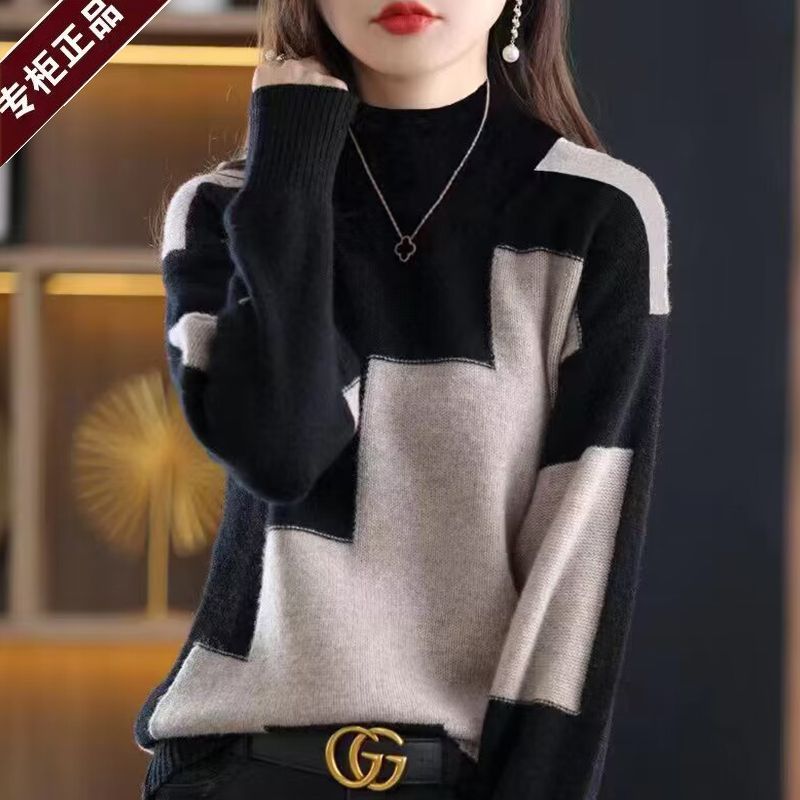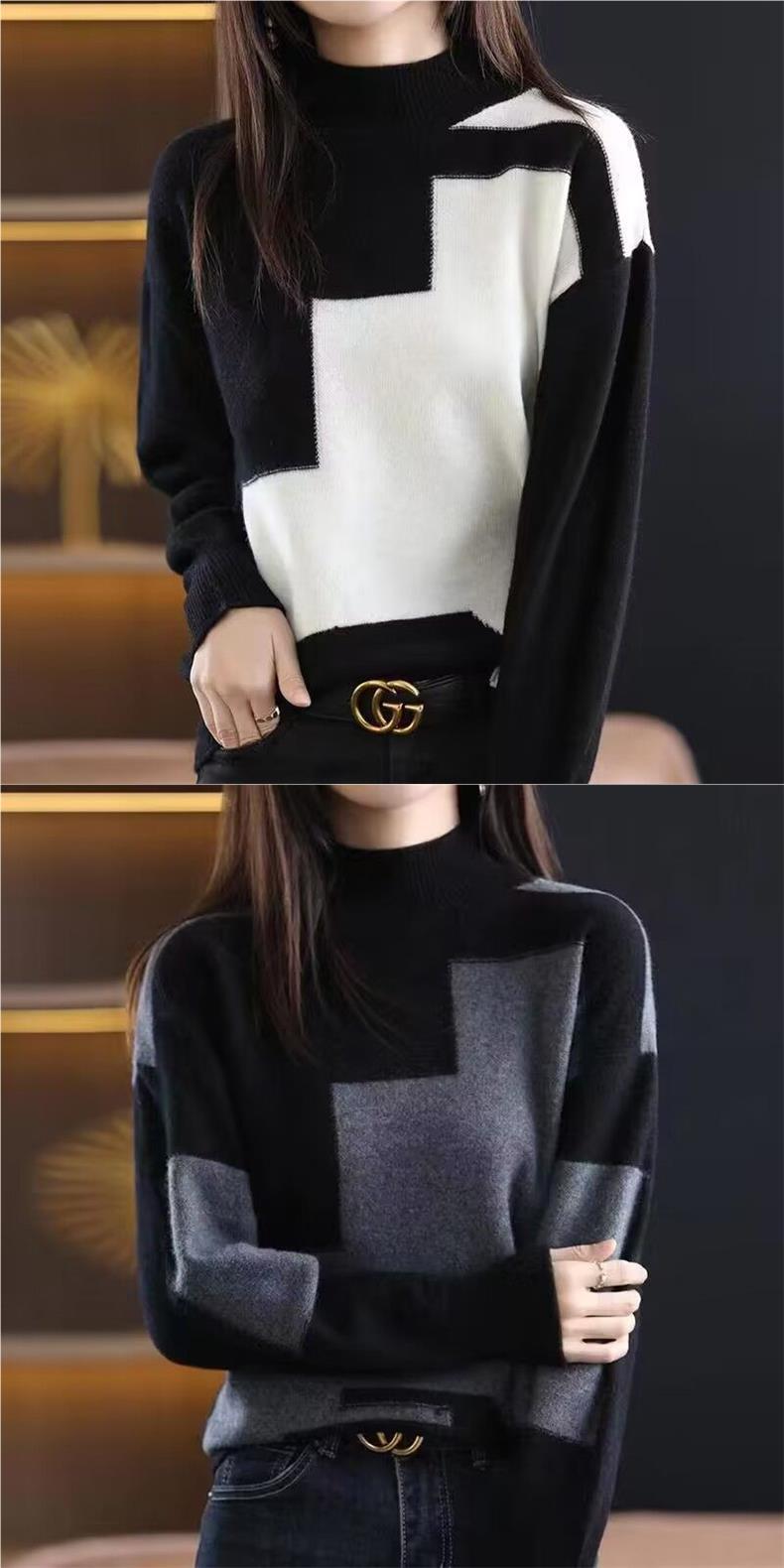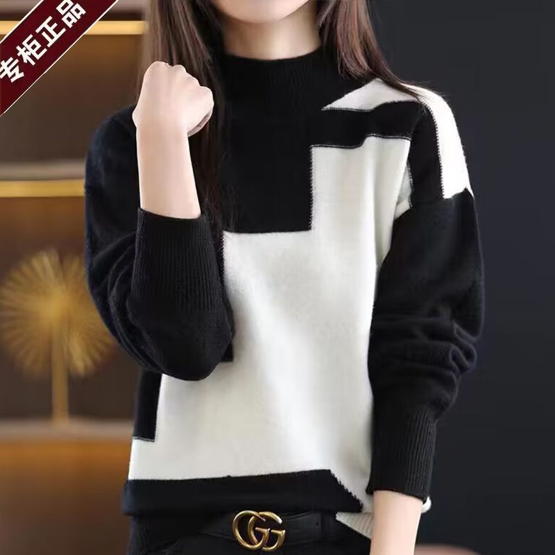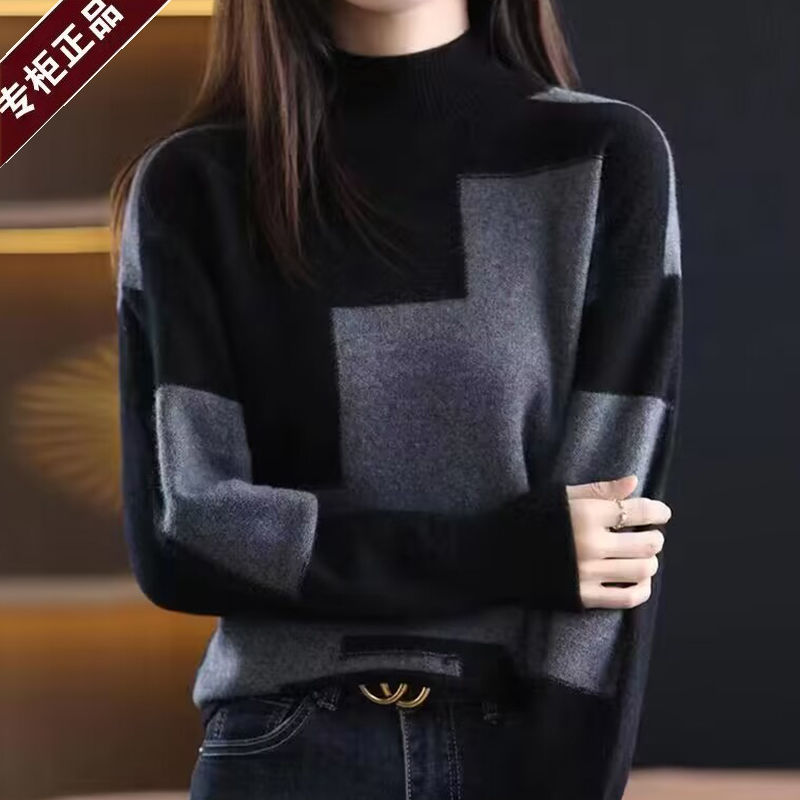 누수 픽업 허가 ~ 대외 무역 여성 벨벳 스웨터 가을과 겨울 새로운 세미 하이 칼라 느슨한베이스 셔츠 외국 스타일 니트 스웨터스토어 가기