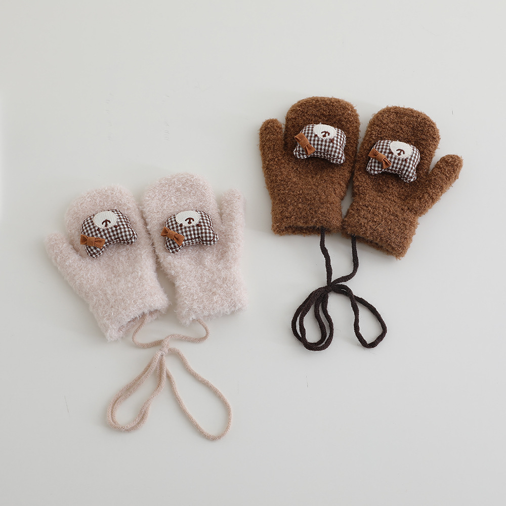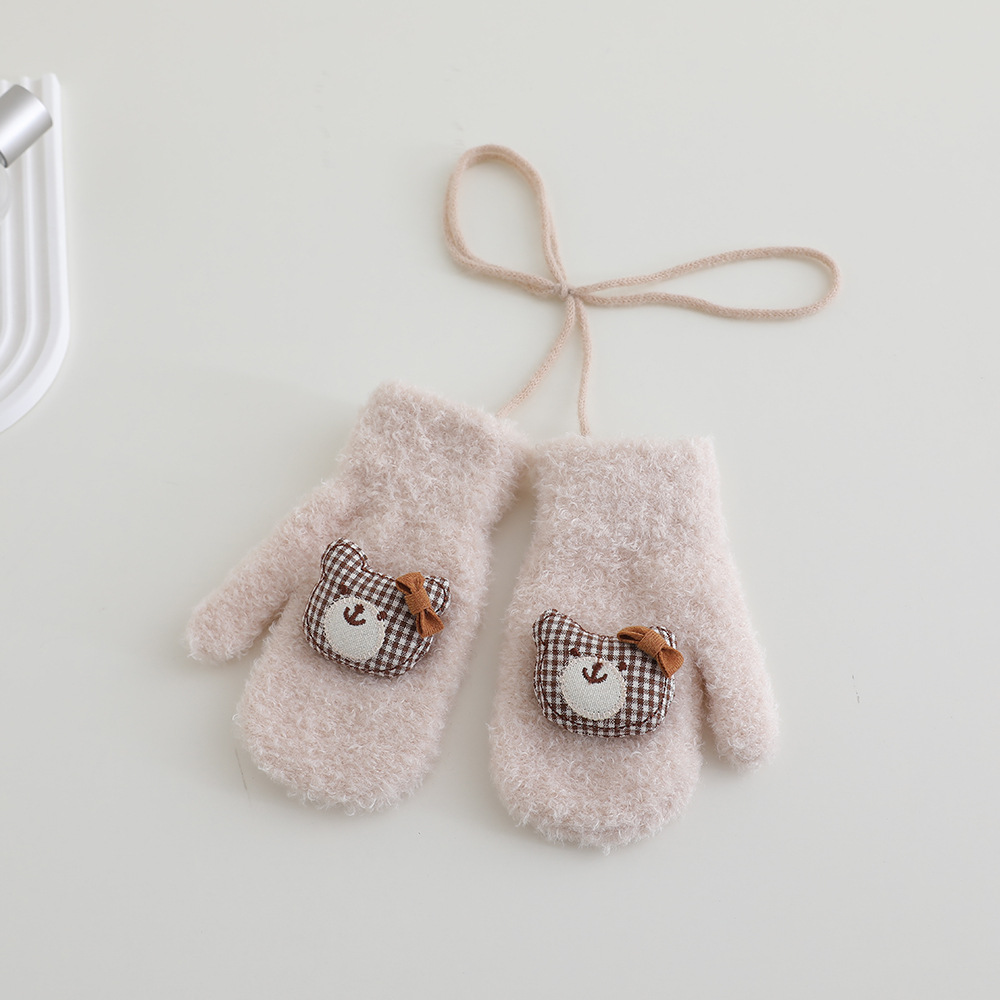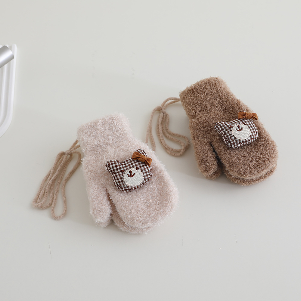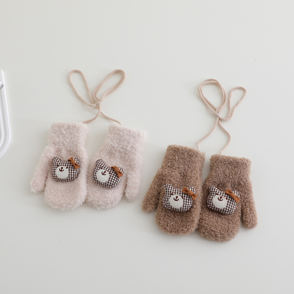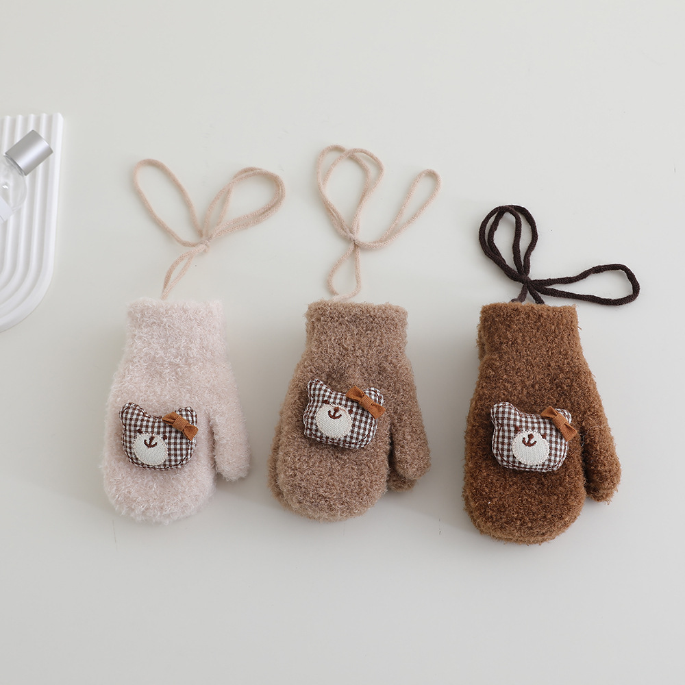 어린이 장갑 겨울 2 ~ 6 세 어린이 외국식 활 체크 곰 벨벳 가방 손가락 목 장갑 조수