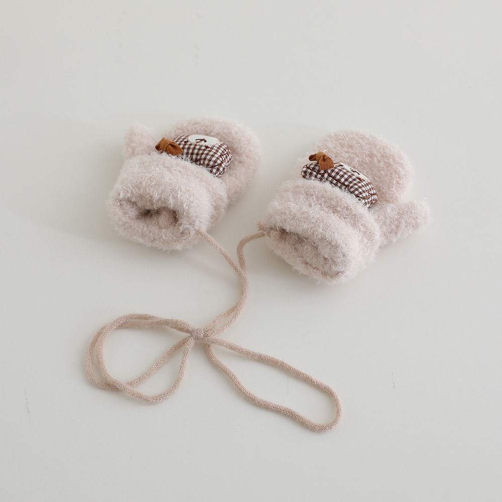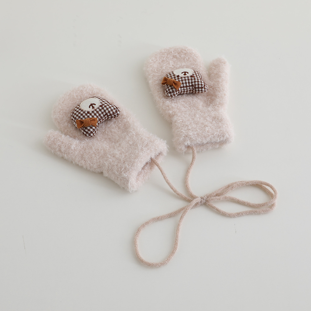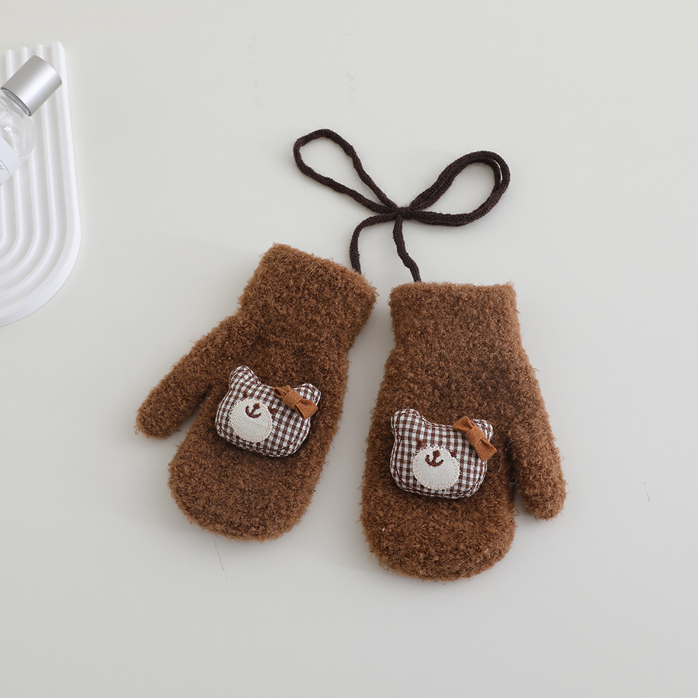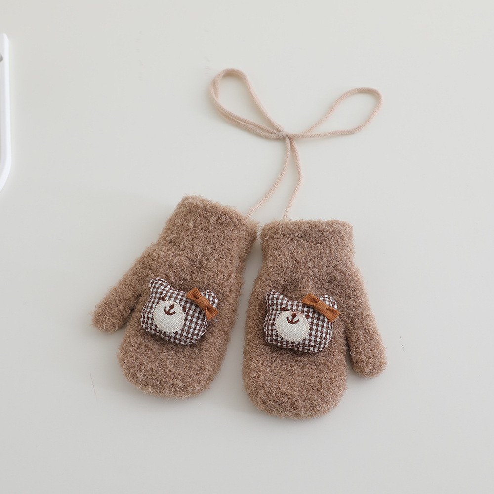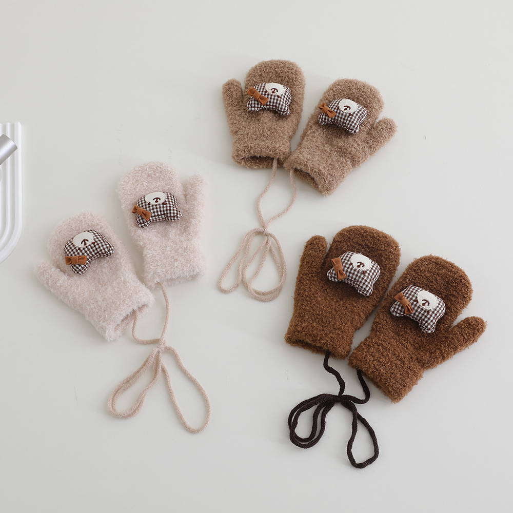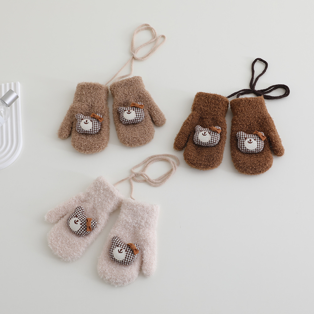 어린이 장갑 겨울 2 ~ 6 세 어린이 외국식 활 체크 곰 벨벳 가방 손가락 목 장갑 조수