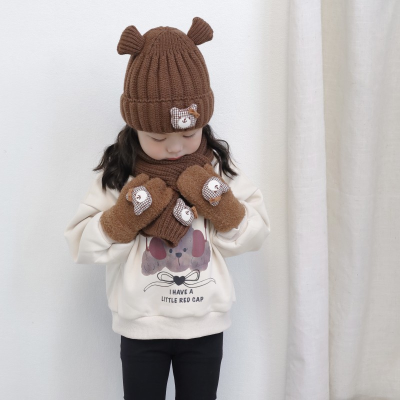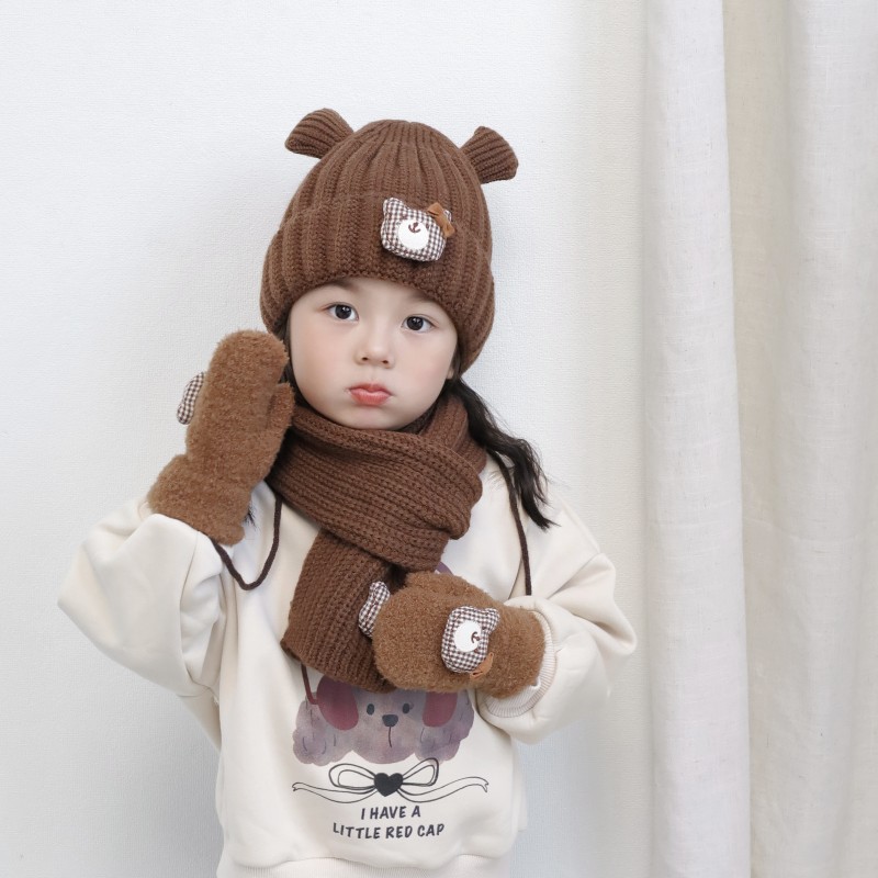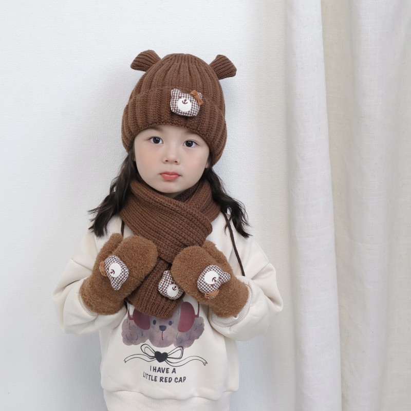 어린이 장갑 겨울 2 ~ 6 세 어린이 외국식 활 체크 곰 벨벳 가방 손가락 목 장갑 조수스토어 가기