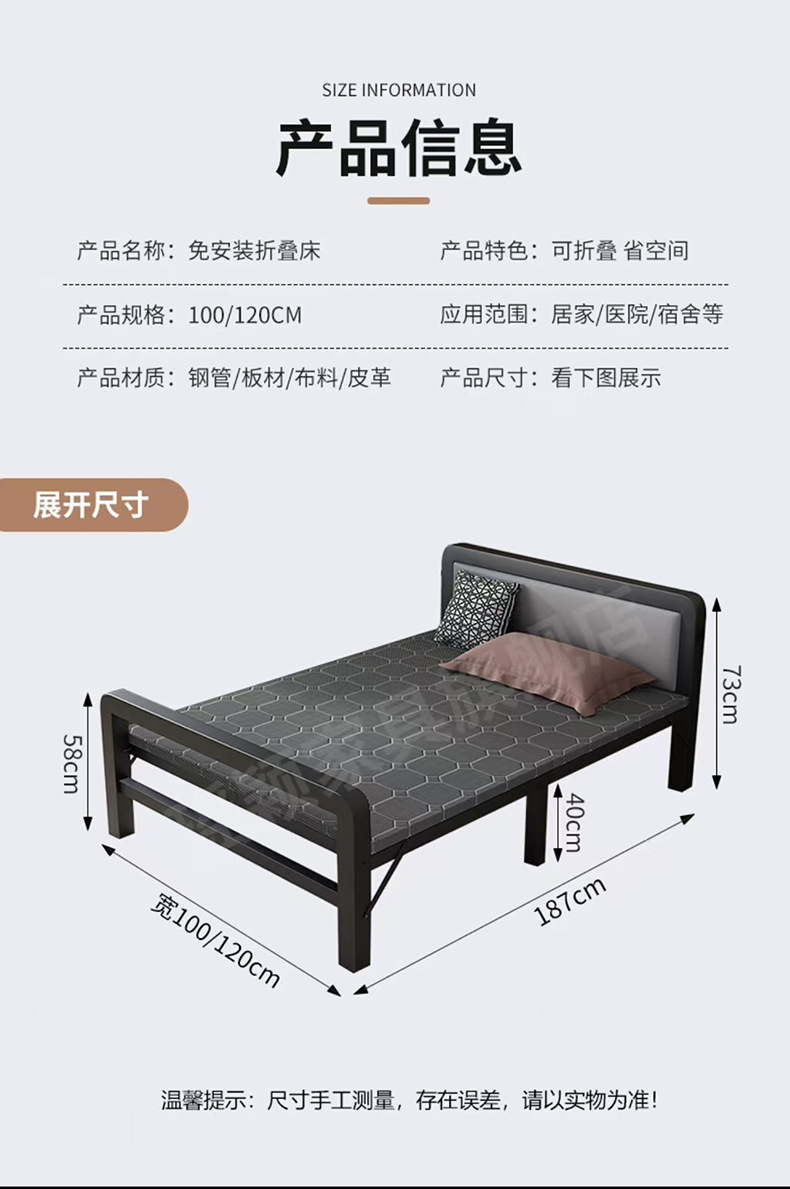 가정용 접이식 침대 아이언 침대 기숙사 실내 싱글 침대 1 m 1.2 m 침대 가족 예비 간단한 침대
