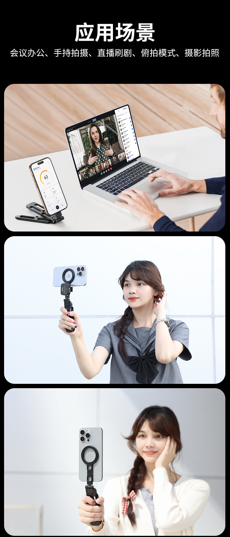 자석 삼각대 여행용 만능 접이식 휴대용 휴대폰 데스크탑 MAGsafe 스탠드