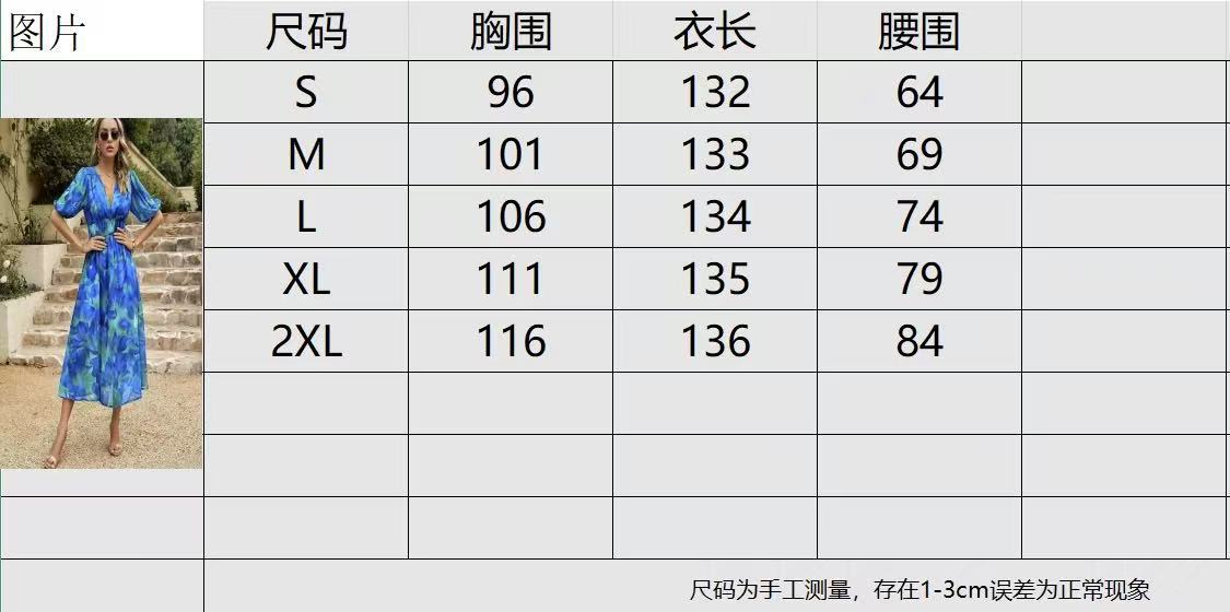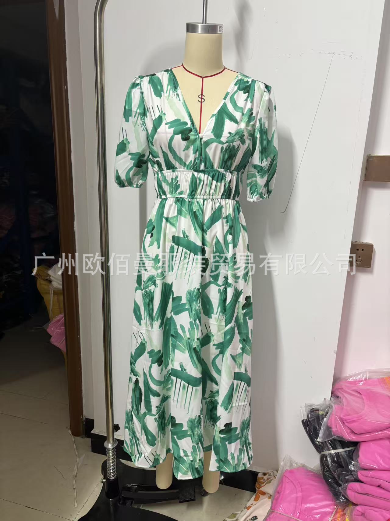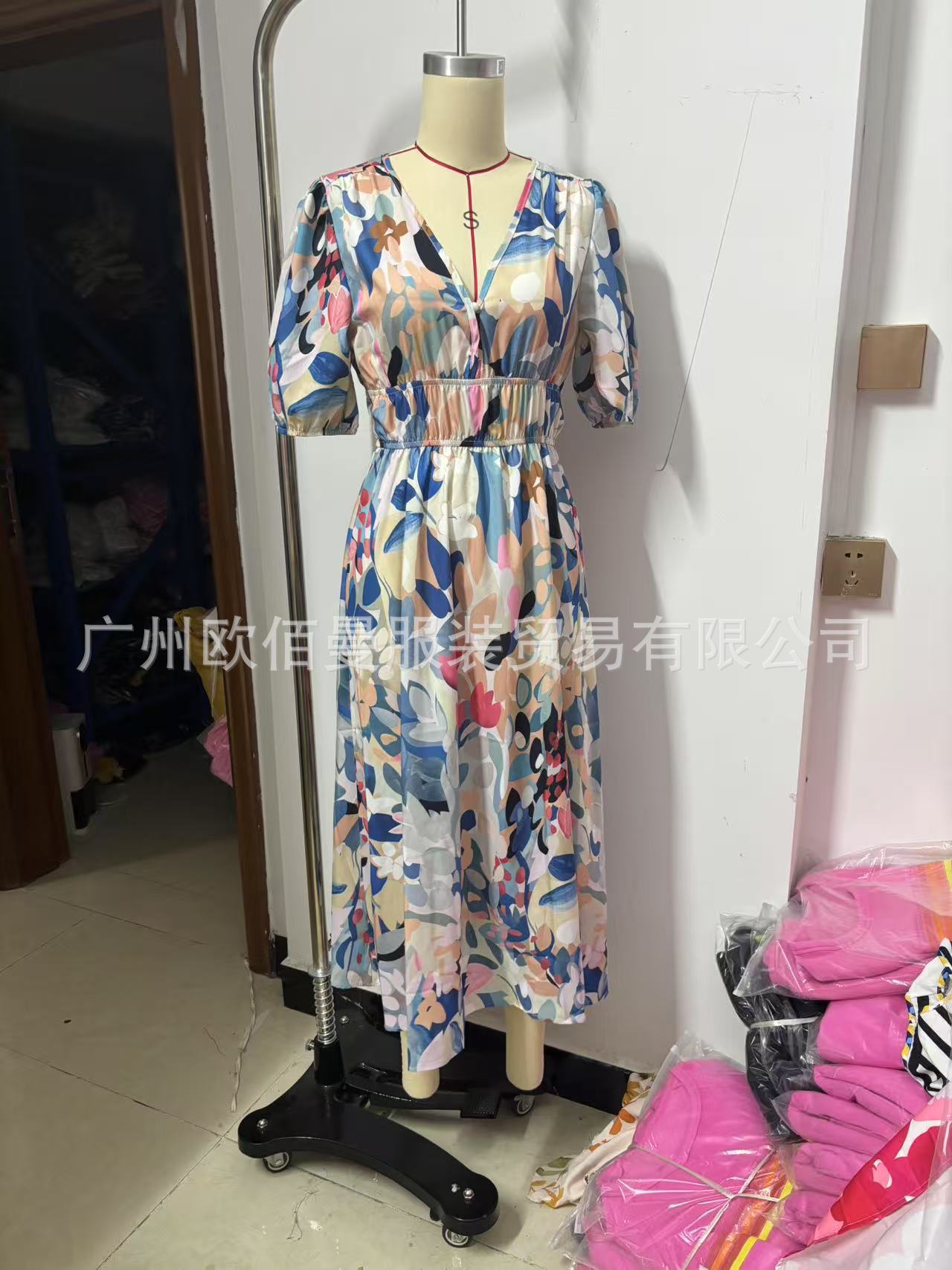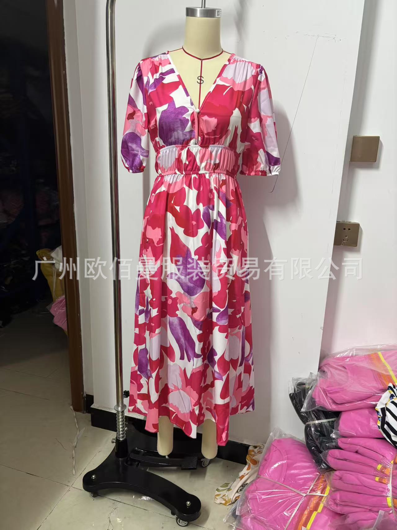 유럽과 미국 아마존 원피스 봄과 여름 의류 폭발 V 칼라 인쇄 허리 원피스 패션 여성의 대외 무역 도매스토어 가기
