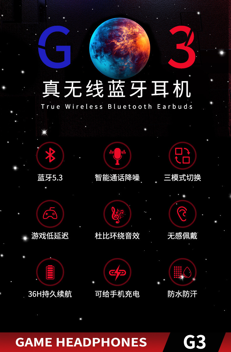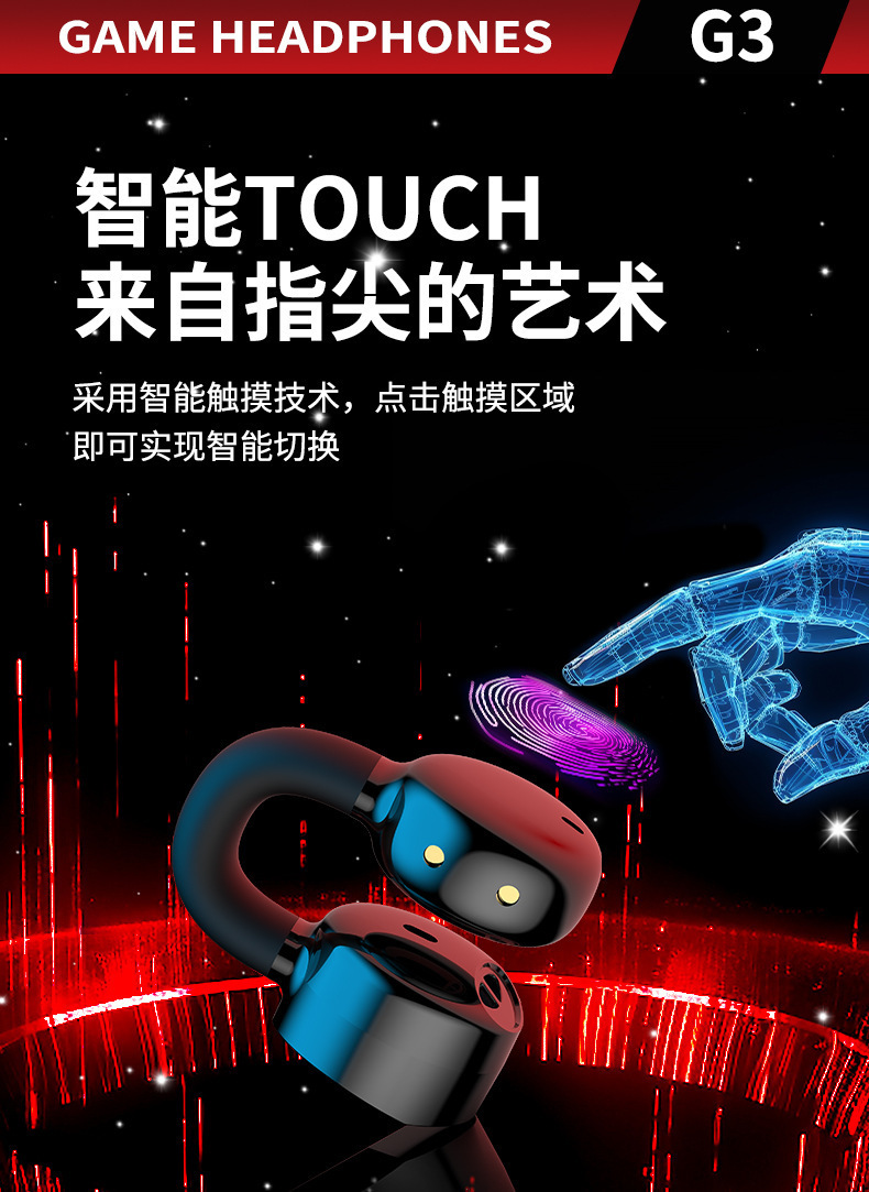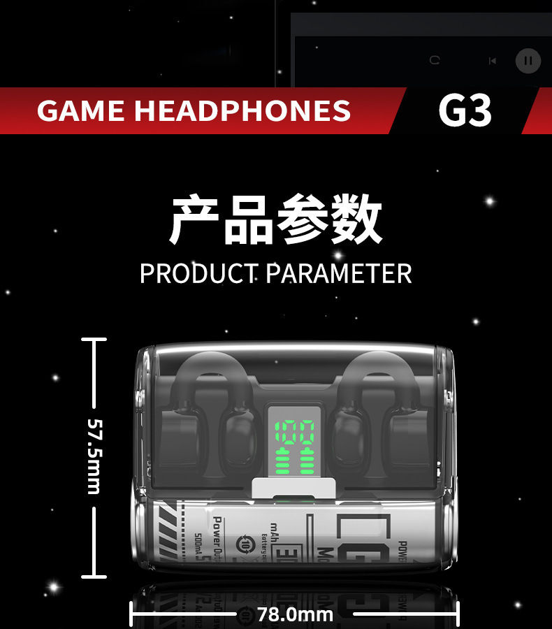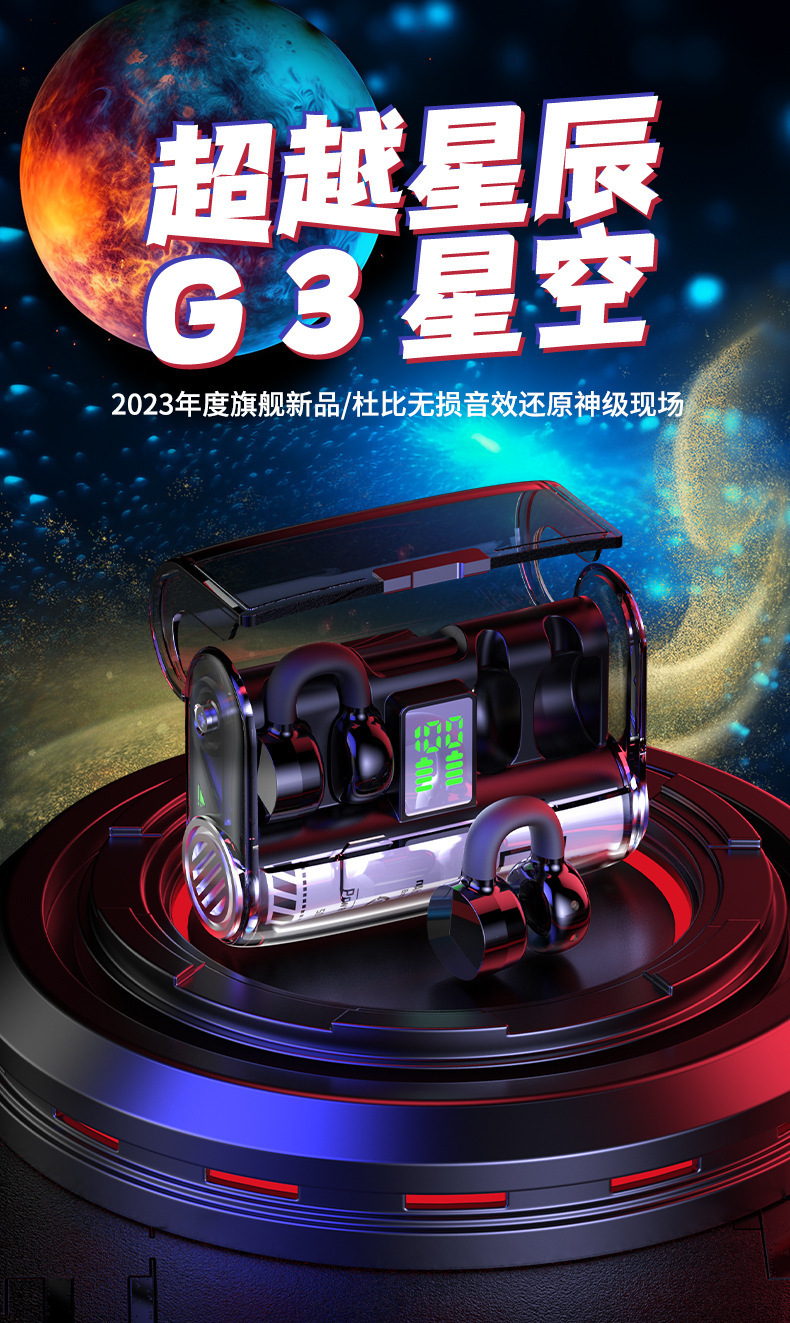 국경 간 새로운 G3 무선 블루투스 헤드셋 쿨 투명 캐빈 소음 감소 터치 디지털 디스플레이 충전식 휴대 전화 긴 배터리 수명
