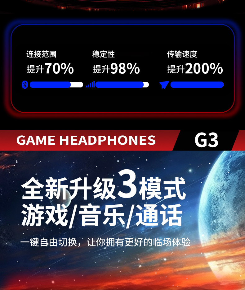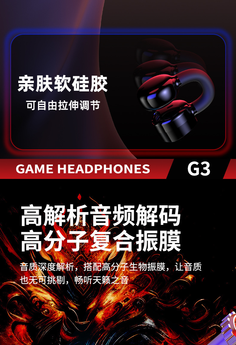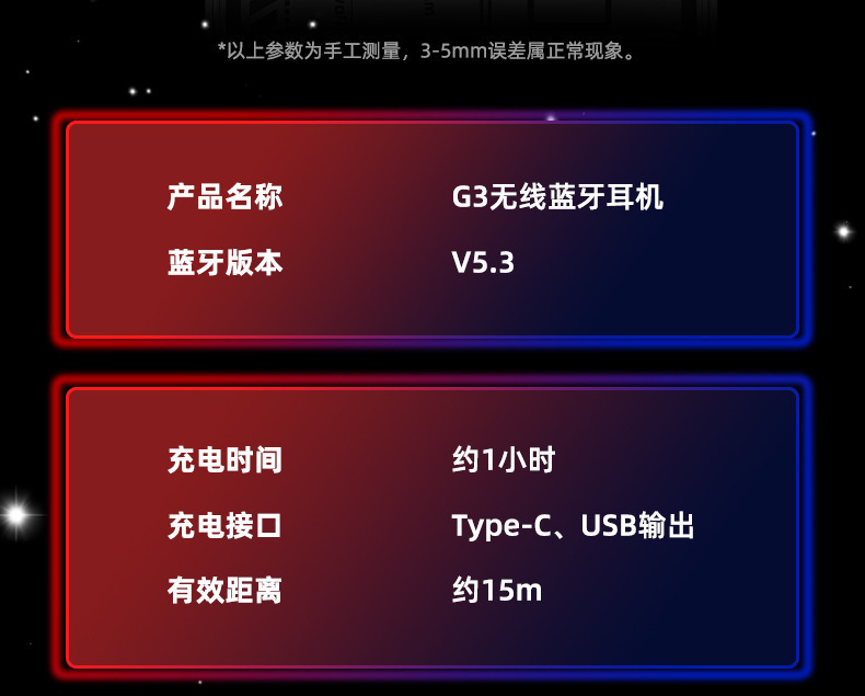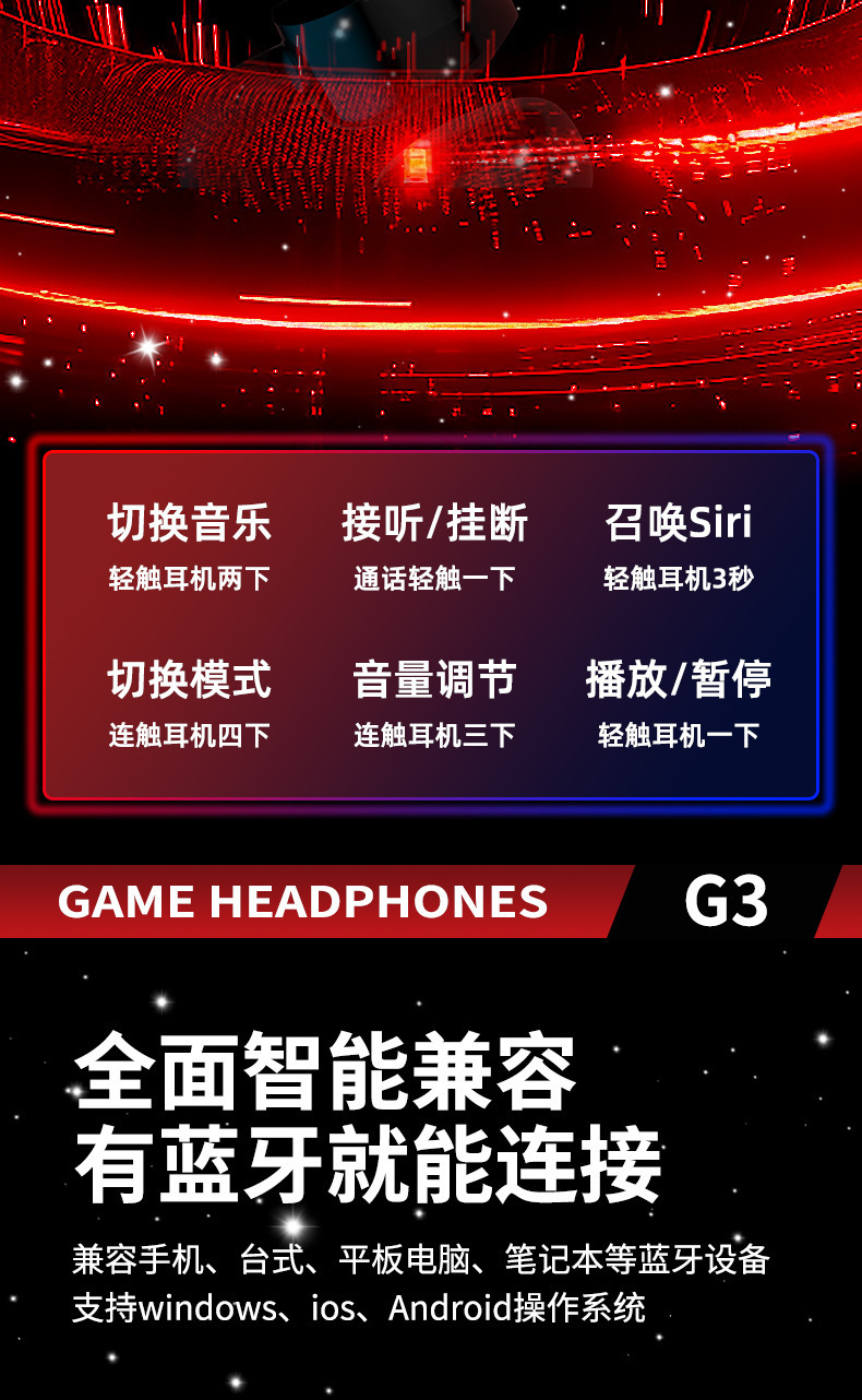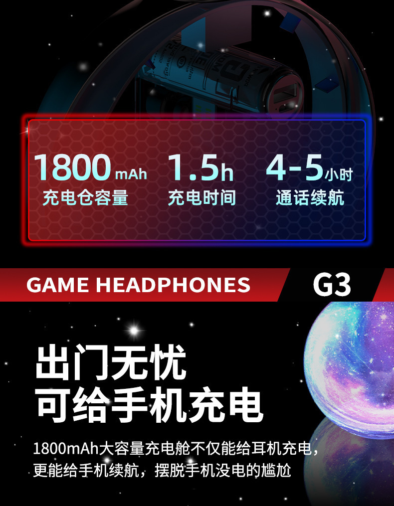 국경 간 새로운 G3 무선 블루투스 헤드셋 쿨 투명 캐빈 소음 감소 터치 디지털 디스플레이 충전식 휴대 전화 긴 배터리 수명