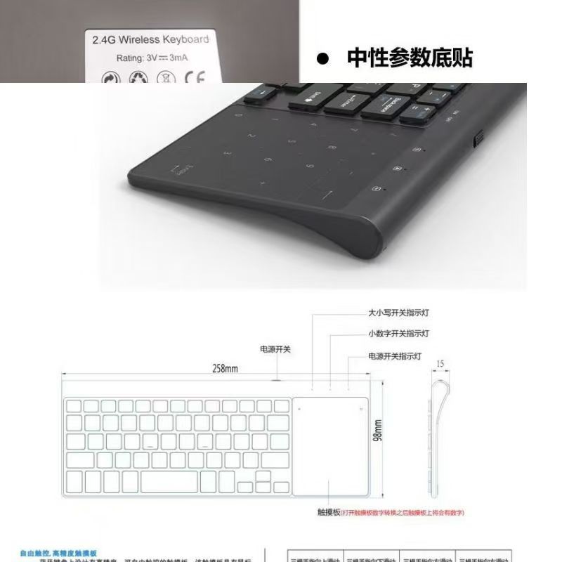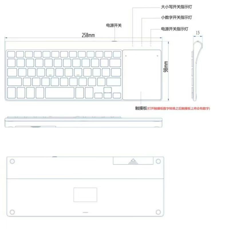 미니 2.4GUSB 블루투스 무선 트랙 패드 디지털 키보드 마우스 경량 태블릿 PC 휴대용