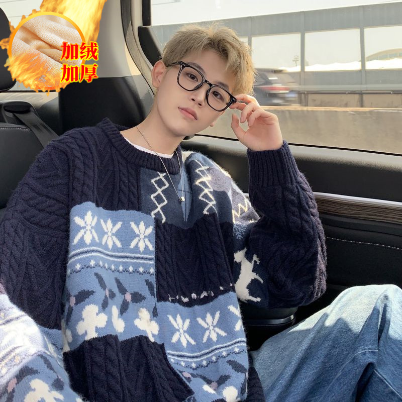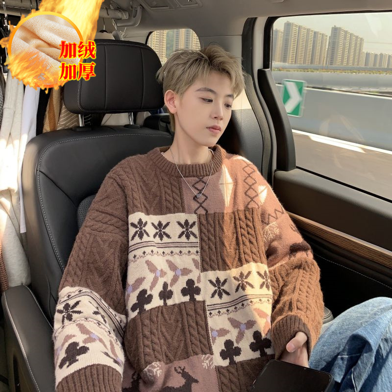 스웨터 남자의 겨울 두꺼운 게으른 Bottoming 니트 스웨터 빈티지 스티칭 따뜻한 느슨한 스웨터 코트