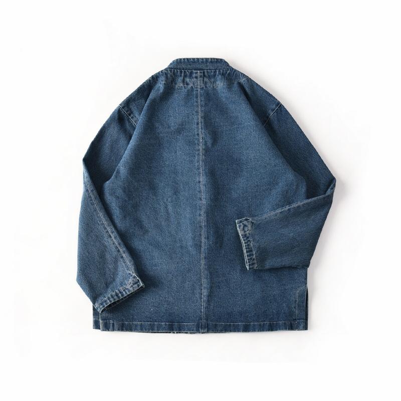 중국풍 단추 장식의 순면 워싱 캐주얼 스탠드 칼라 데님 셔츠 재킷 남성용 봄 가을 멋진 스타일스토어 가기