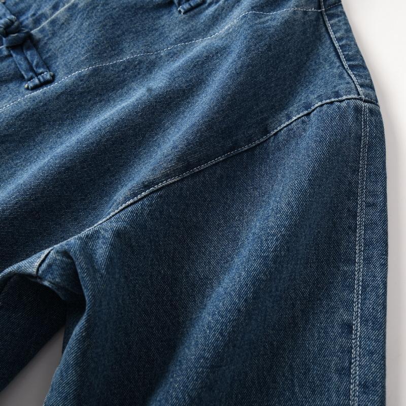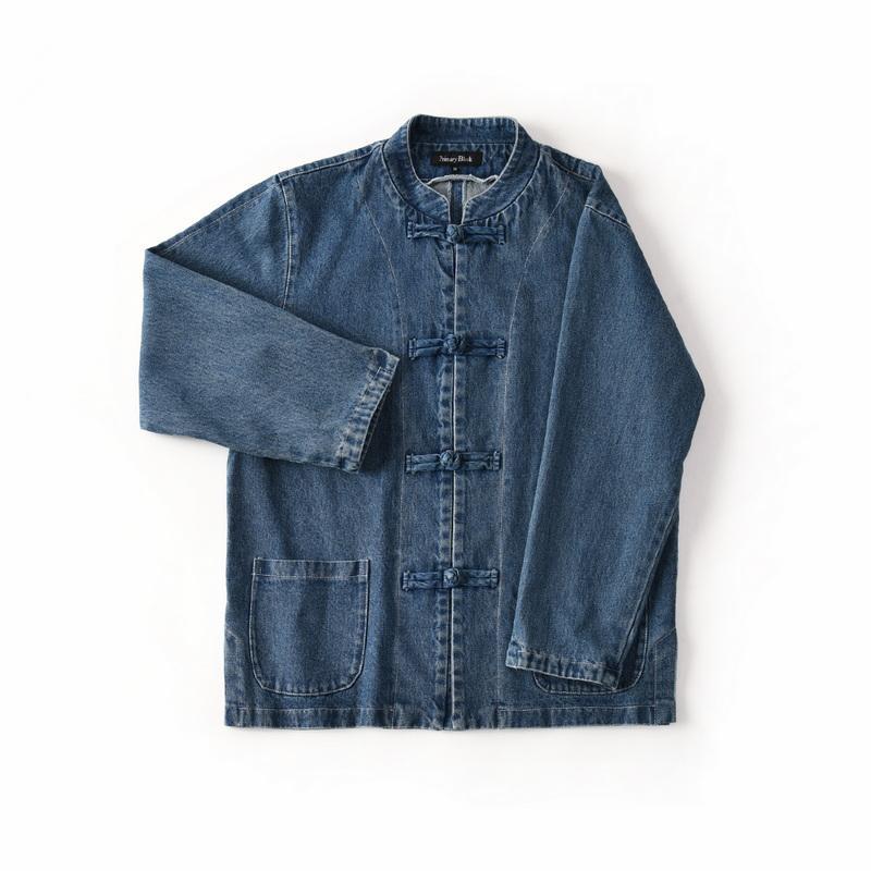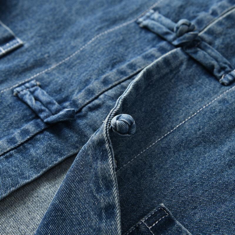 중국풍 단추 장식의 순면 워싱 캐주얼 스탠드 칼라 데님 셔츠 재킷 남성용 봄 가을 멋진 스타일