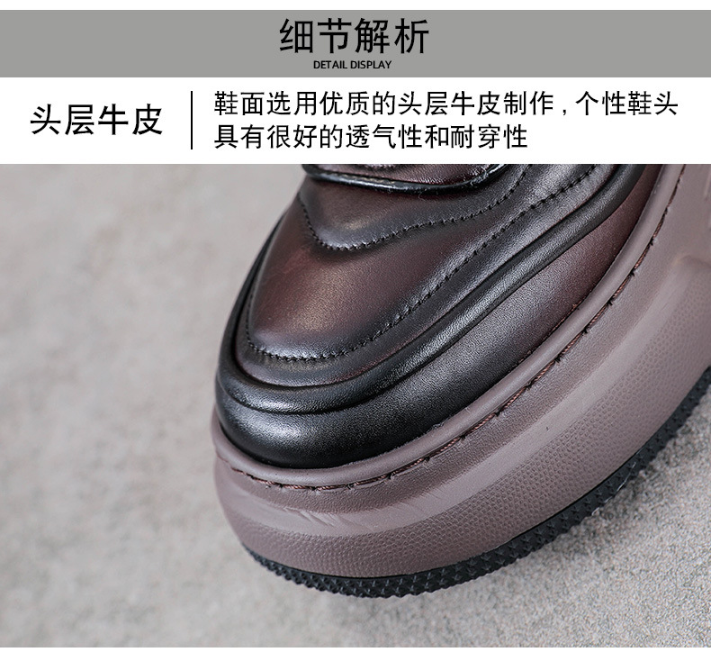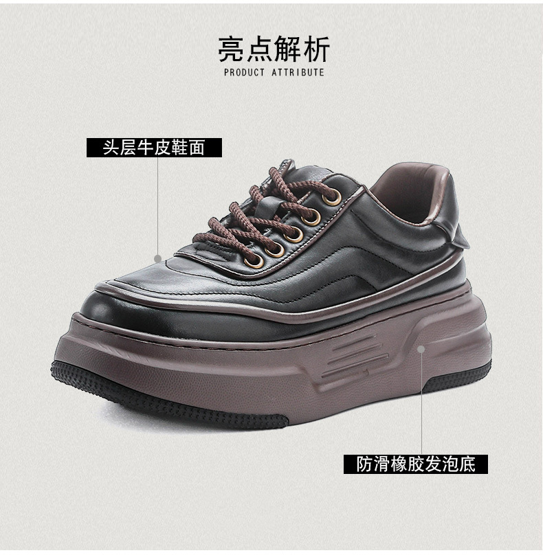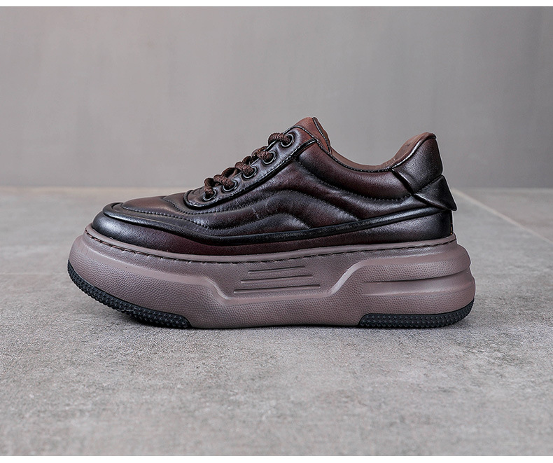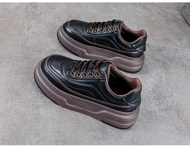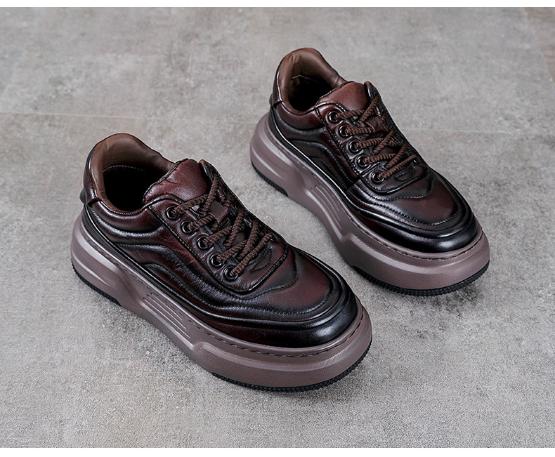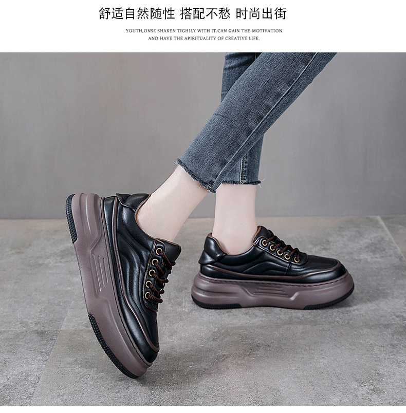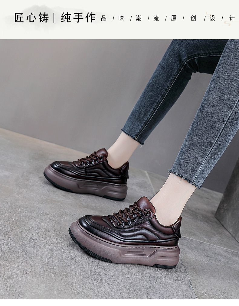 탑 레이어 소 가죽 두꺼운 밑창 신발 여성 캐주얼 스케이트 신발 2025 봄과 가을 새로운 머핀 정품 가죽 빈티지 빵 여성 신발