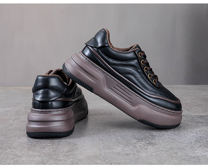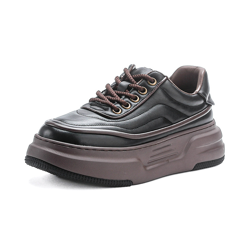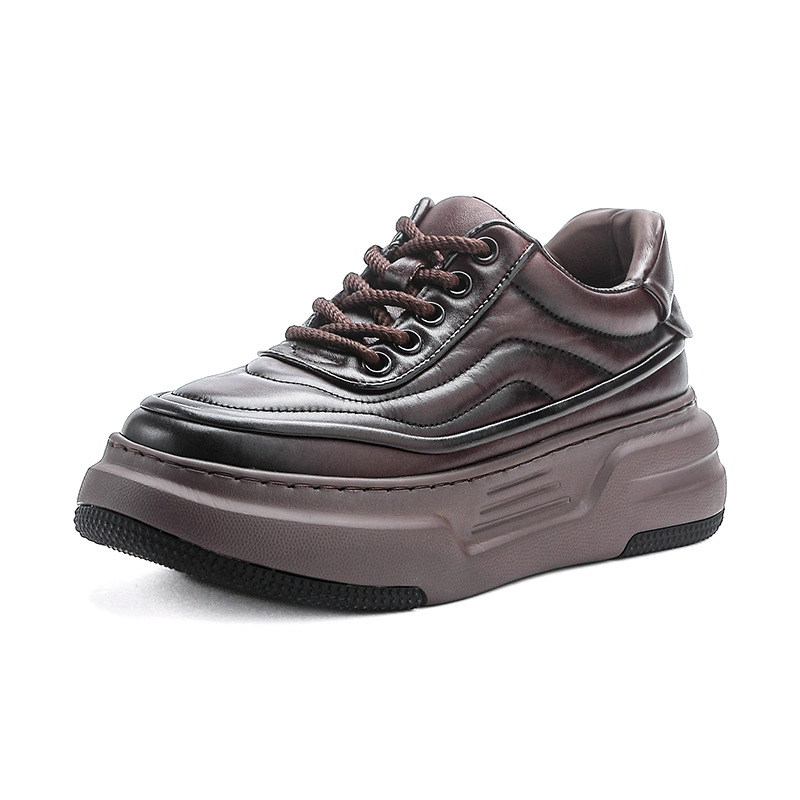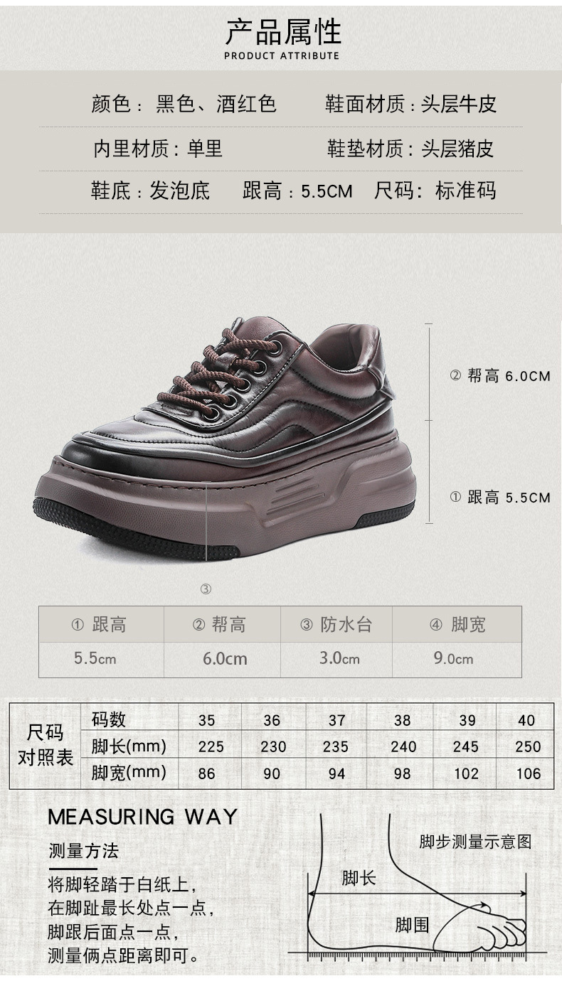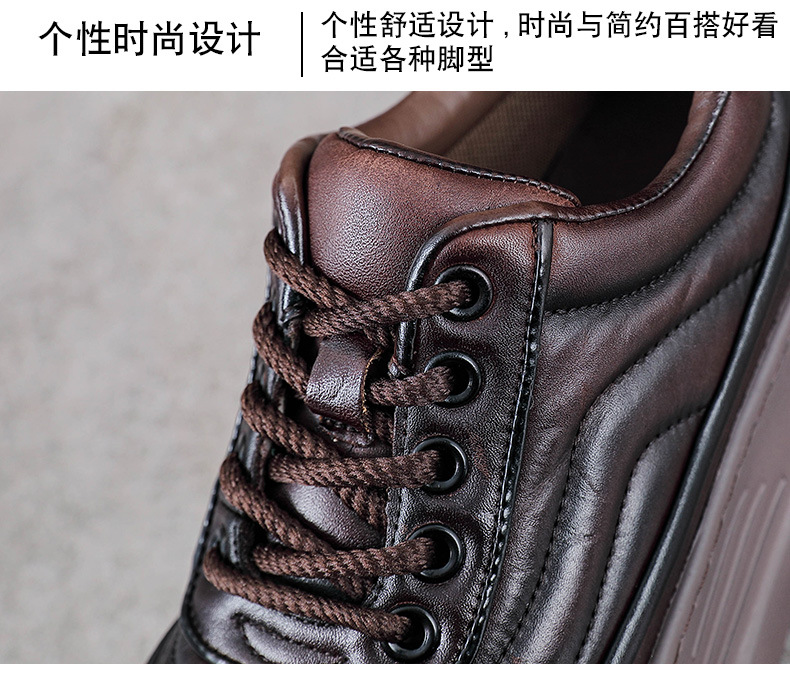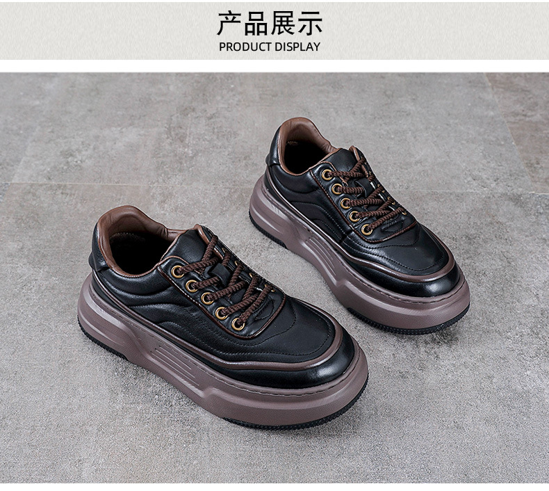 탑 레이어 소 가죽 두꺼운 밑창 신발 여성 캐주얼 스케이트 신발 2025 봄과 가을 새로운 머핀 정품 가죽 빈티지 빵 여성 신발