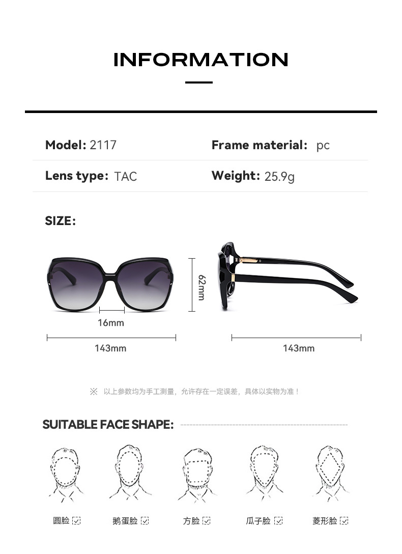 새로운 TR90 여성 유럽과 미국의 패션 대형 프레임 선글라스 Amazon 국경 간 편광 선글라스 제조 업체 도매