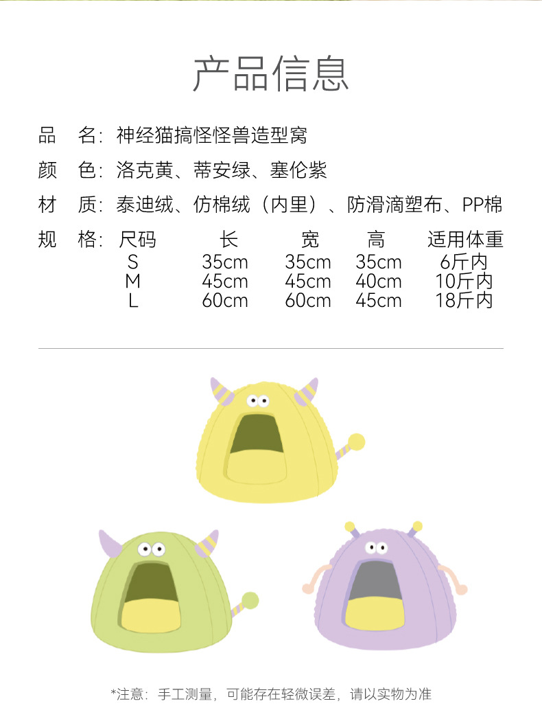 고양이 가을과 겨울 유르트 재미있는 괴물 따뜻한 고양이 둥지 테디 작은 개 사육장 귀여운 애완 동물 둥지 용품스토어 가기