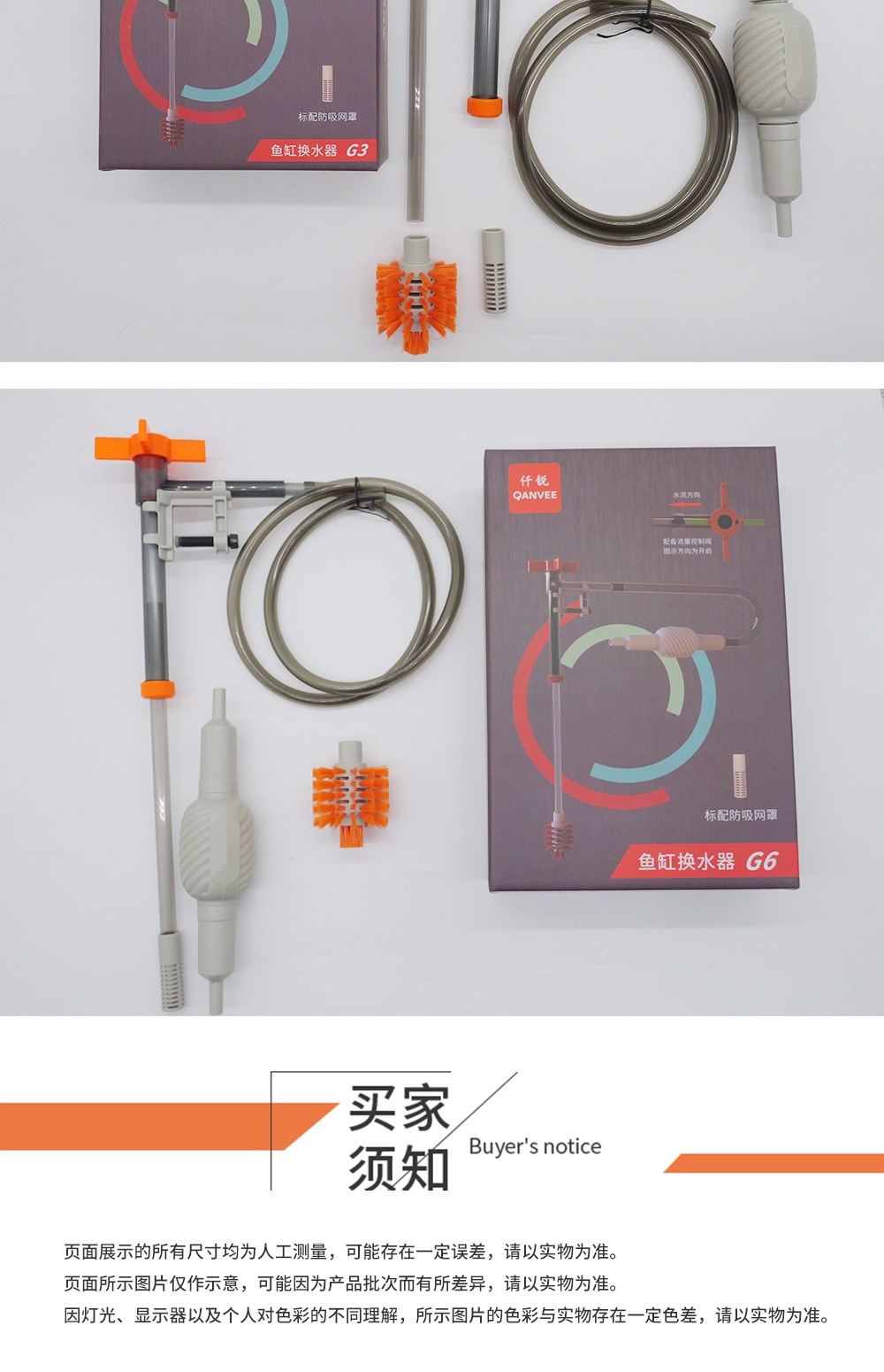 Qianrui 어항 물 교환기 G3 G6 다기능 수족관 프레스 및 흡입 배설물 청소 실린더 벽 바닥 벨트 스위치 클램프스토어 가기