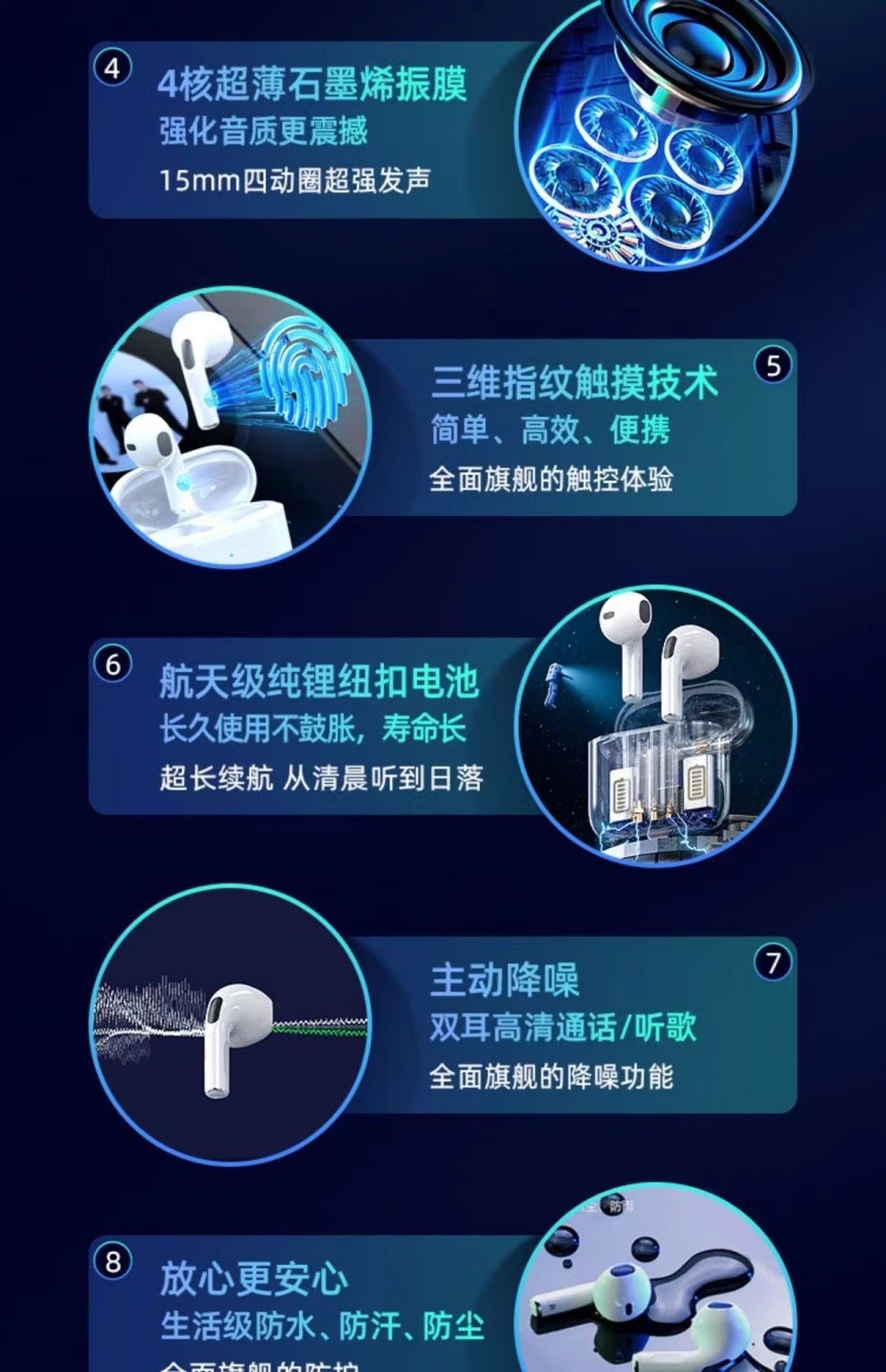 Huaqiangbei 소형 4 세대 pro4 블루투스 헤드셋 절반 인 이어 pro6 긴 내구 교차 경계 tws 실제 무선 헤드셋스토어 가기