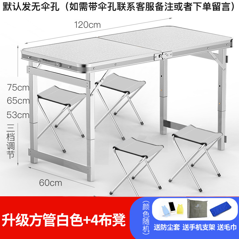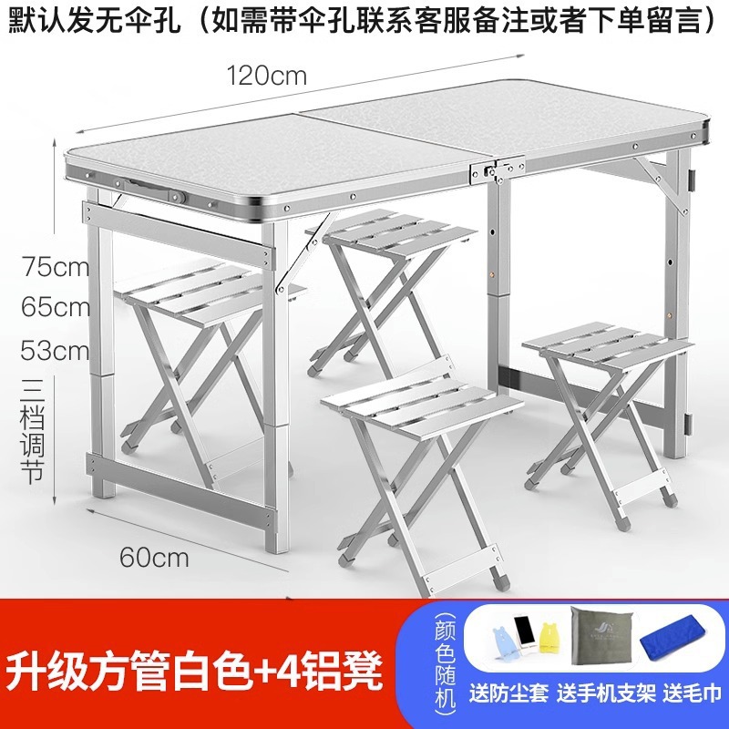 • [업그레이드] 사각 튜브 화이트 + 알루미늄 스툴 4개 [우산 구멍이 필요한 경우 주문 시 메시지를 남겨주세요]