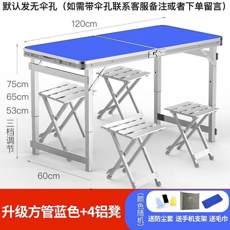 • [업그레이드] 사각 튜브 블루 + 알루미늄 스툴 4개 [우산 구멍이 필요한 경우 주문 시 메시지를 남겨주세요]