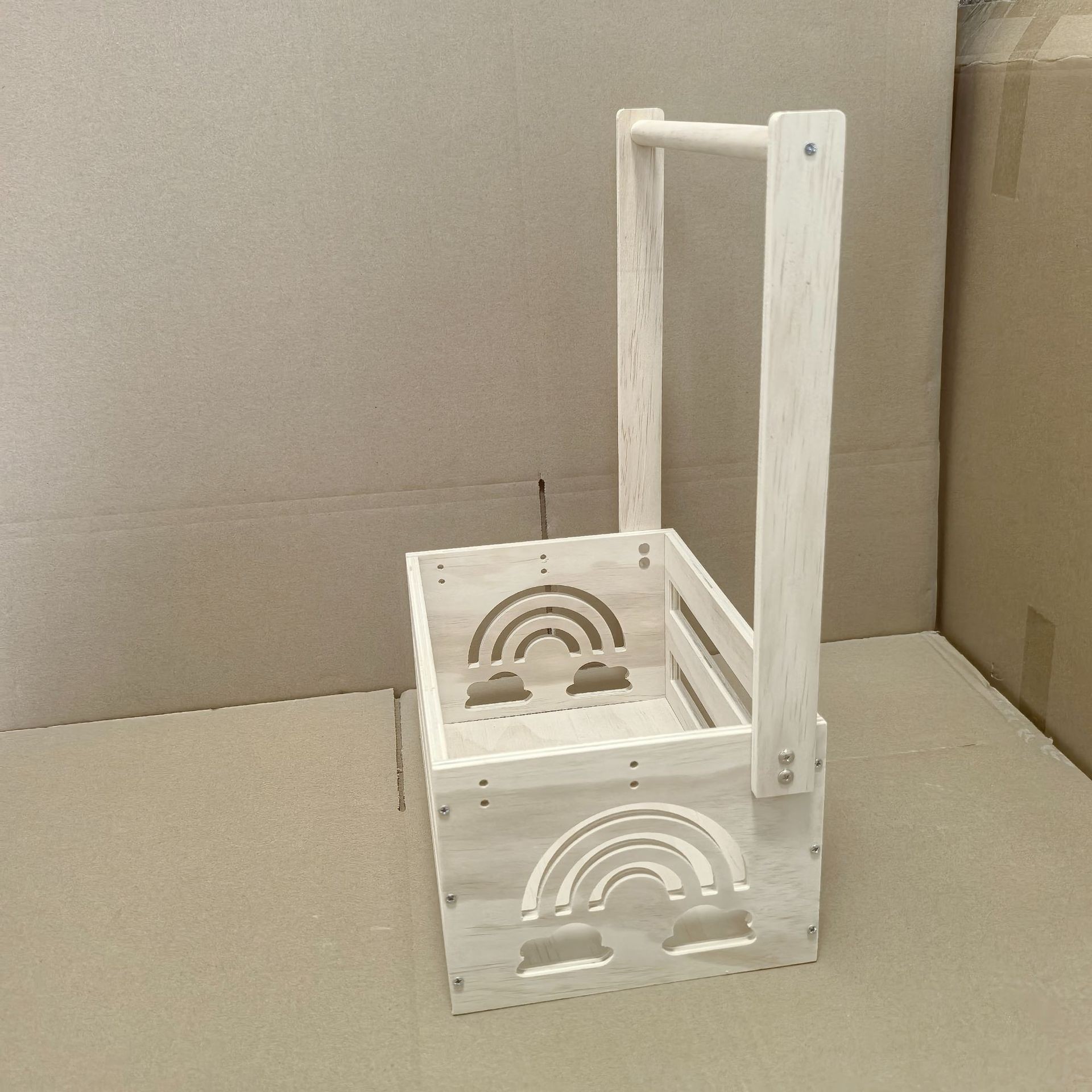 가구 나무 아기 저장 바구니 손잡이를 가진 단단한 나무 아기 옷 저장 상자 옷 장난감 보관 랙스토어 가기