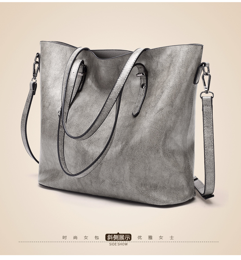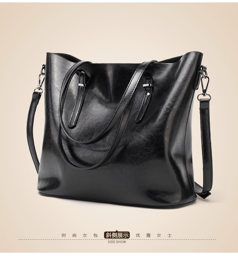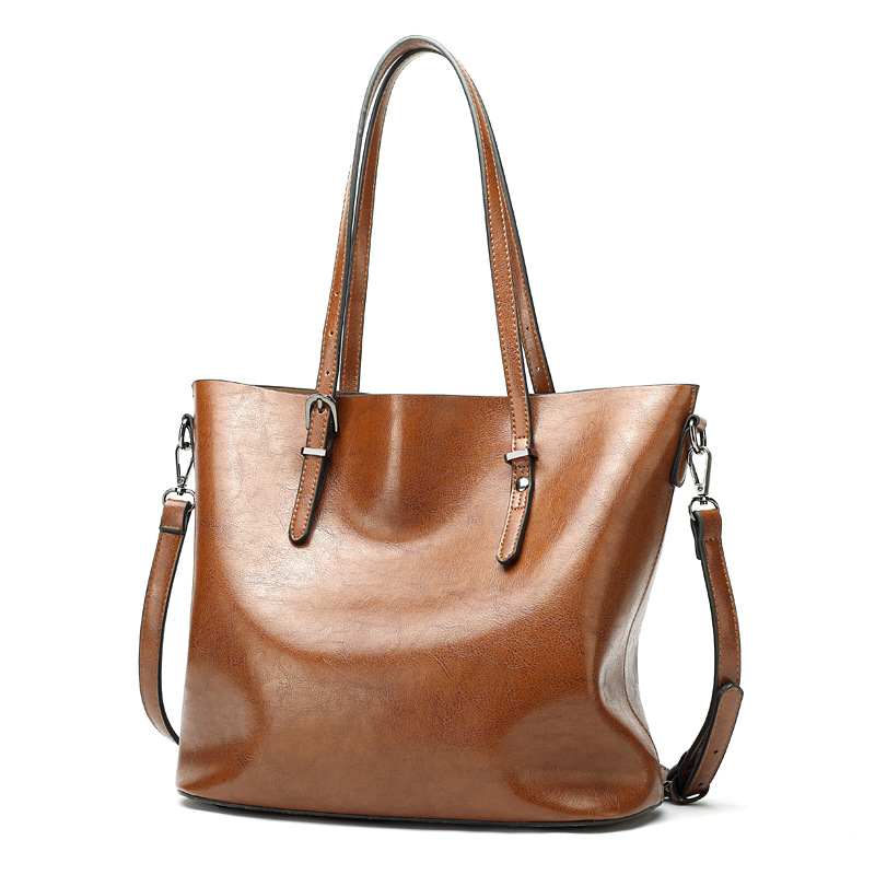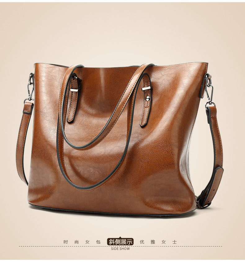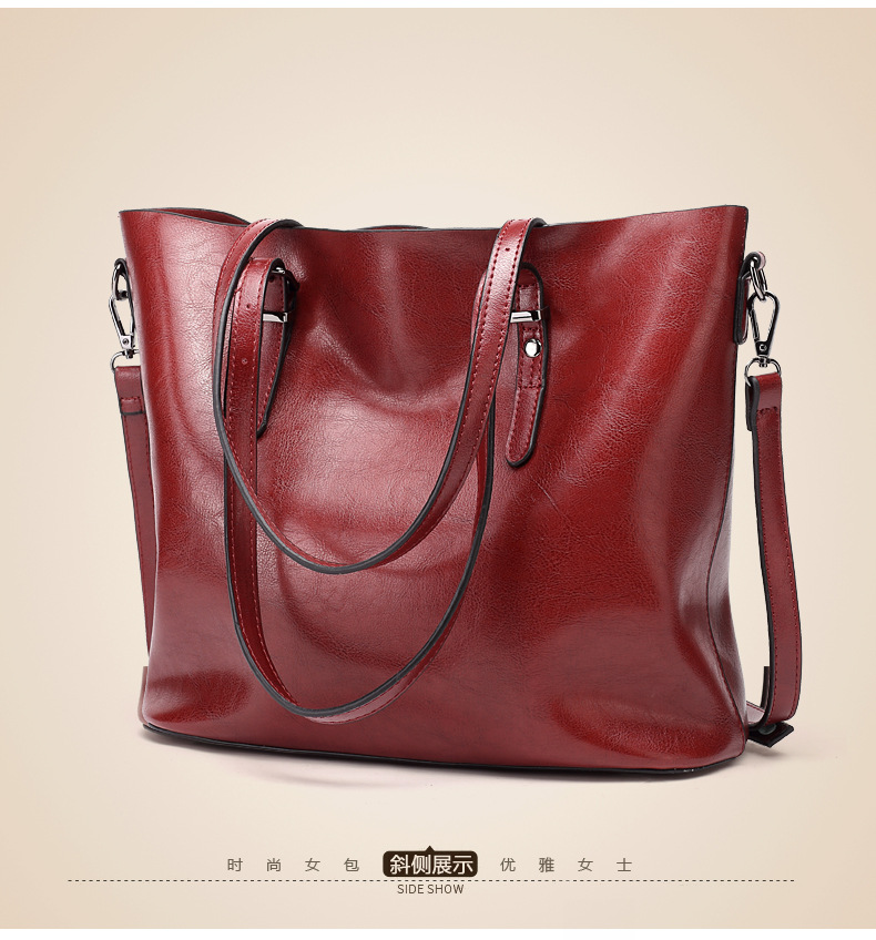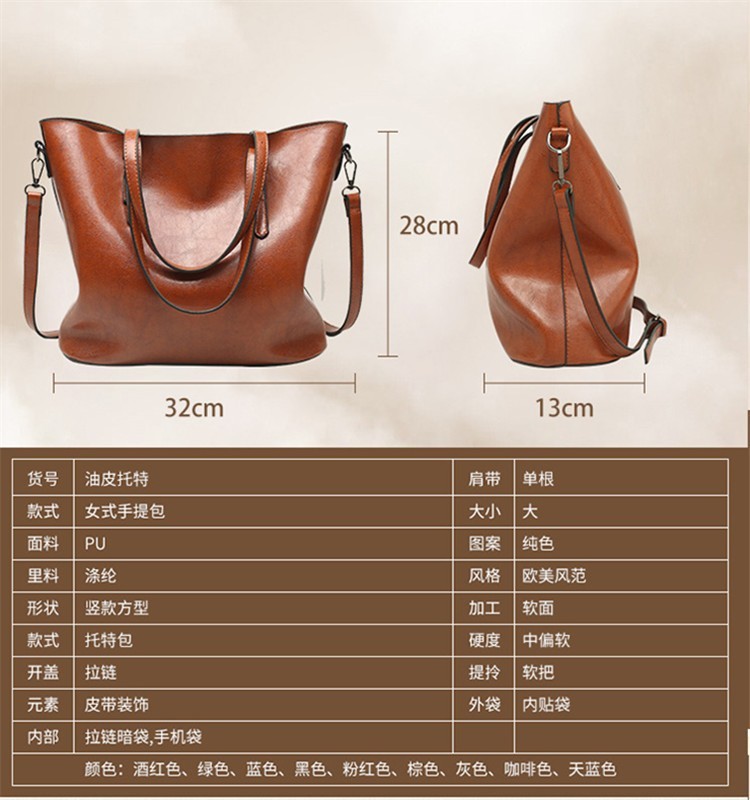 빈티지 스타일 오일 왁스 가죽 어깨 가방 새로운 유행 여성 가방 간단한 우아한 토트 백 특허 가죽 반짝이 핸드백스토어 가기