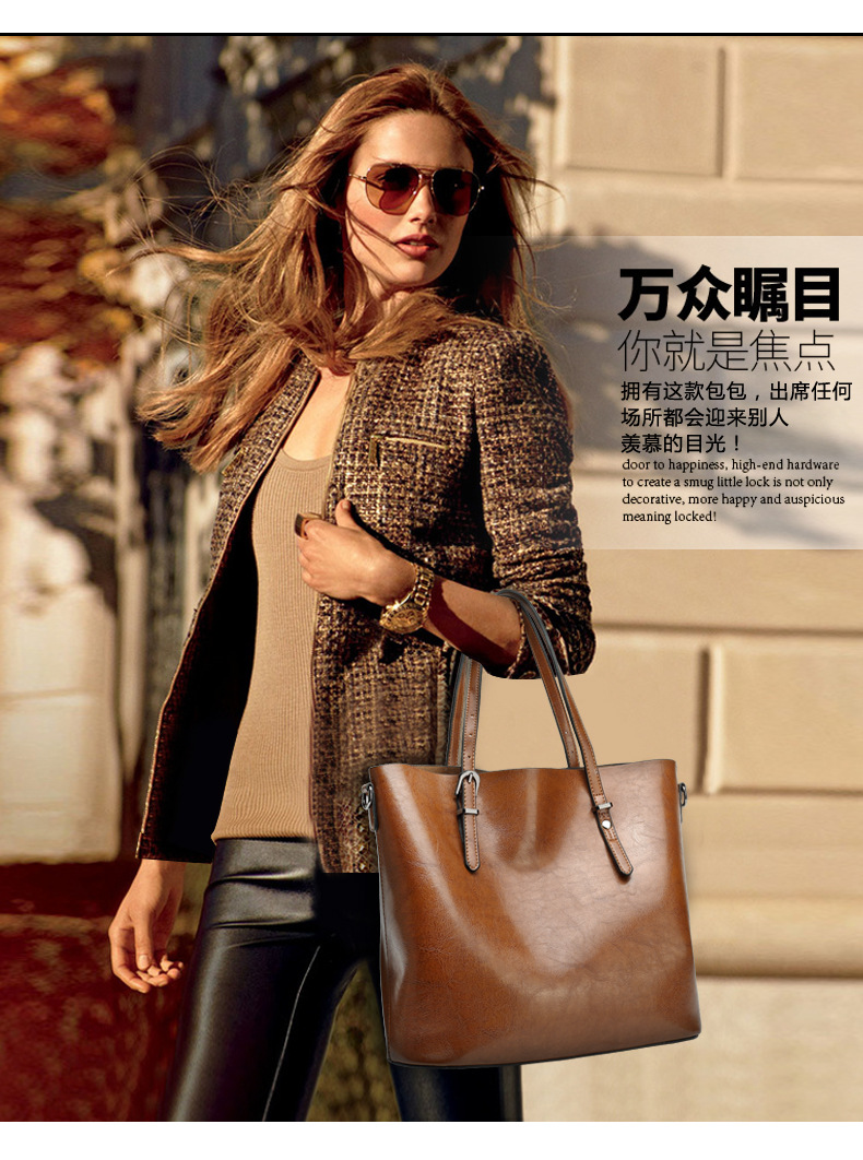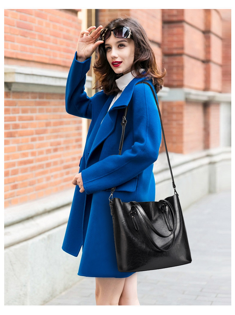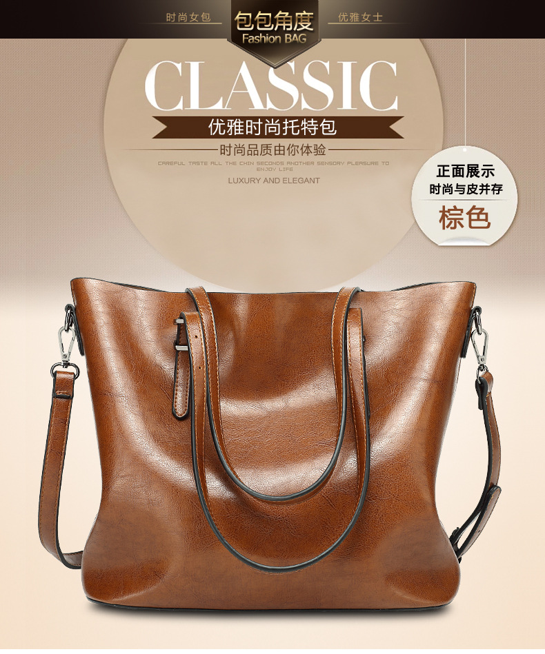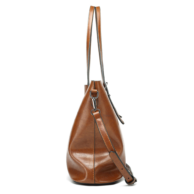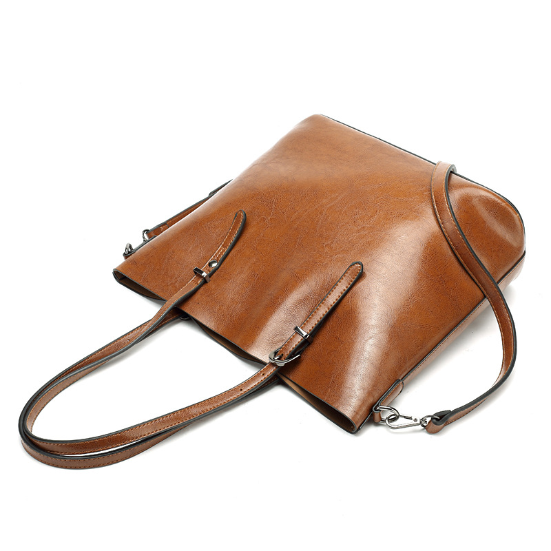 빈티지 스타일 오일 왁스 가죽 어깨 가방 새로운 유행 여성 가방 간단한 우아한 토트 백 특허 가죽 반짝이 핸드백스토어 가기