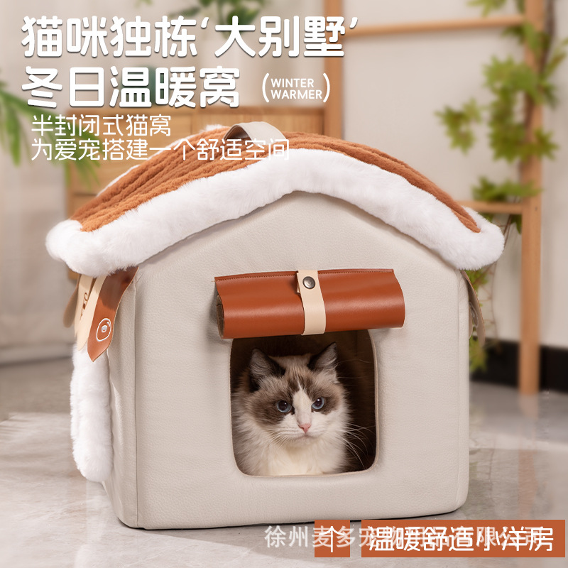 고양이 둥지 겨울 따뜻한 닫힌 작은 개 고양이와 개 사계절 유니버설 이동식 및 세척 가능한 개 집 고양이 둥지 애완 동물 용품