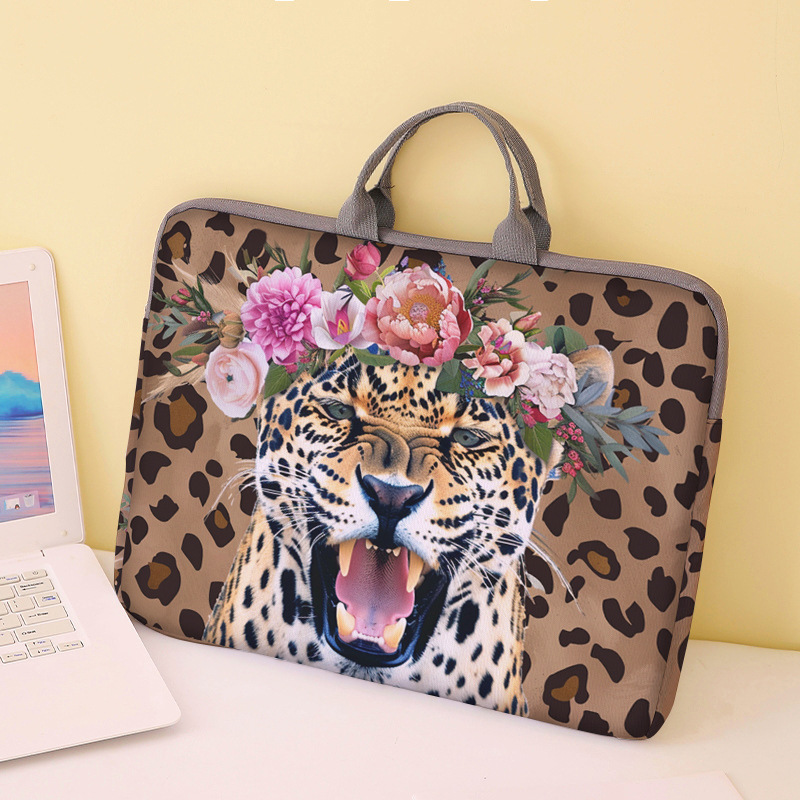 국경 간 간단한 꽃 표범 호랑이 인쇄 노트북 가방 13 인치-14 인치-15 인치 아이패드 노트북 가방스토어 가기