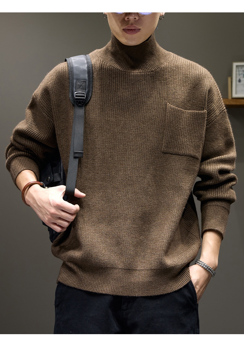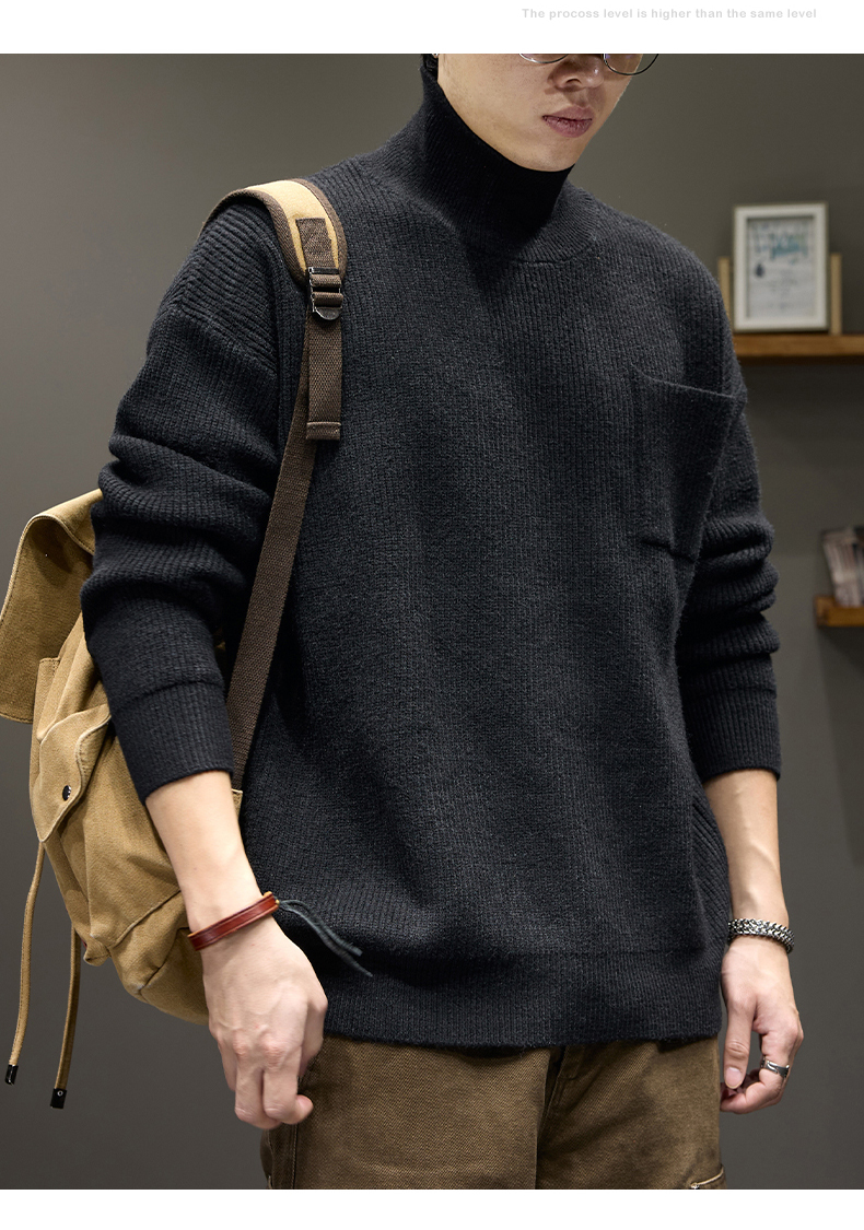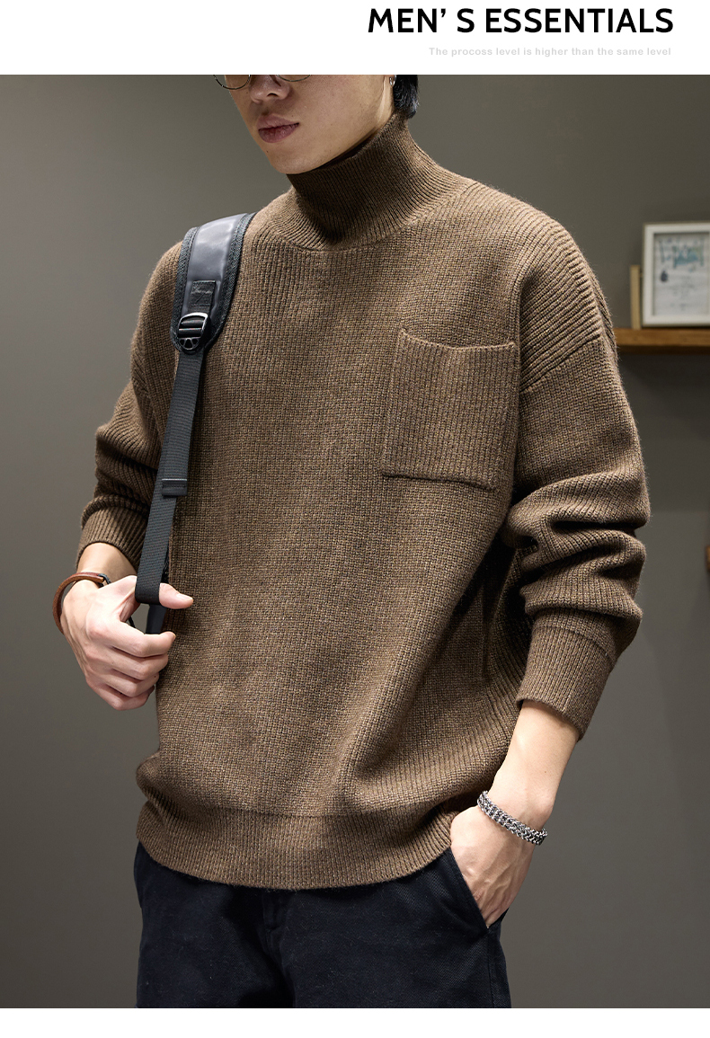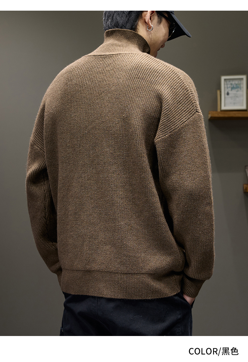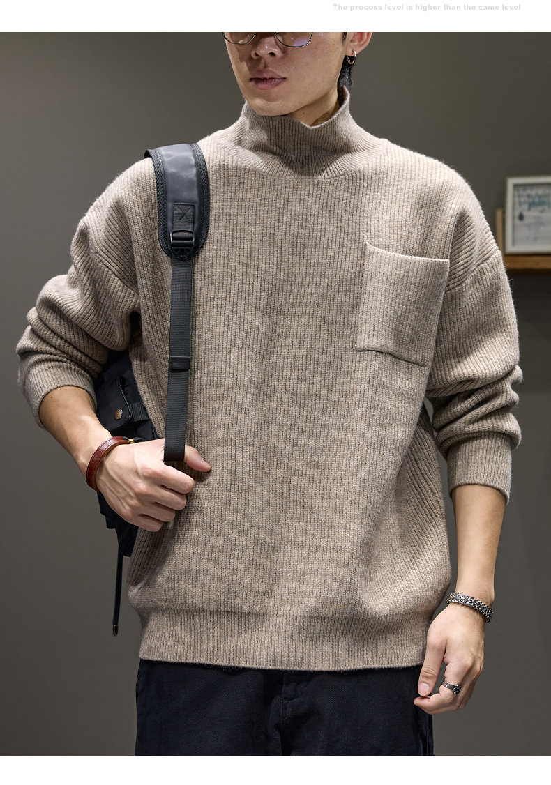 아메리칸 스타일 트렌디 브랜드 하프 터틀넥 스웨터 남성용 루즈 캐주얼 니트 스웨터 가을과 겨울 솔리드 컬러 간단한 올매치 베이스 셔츠